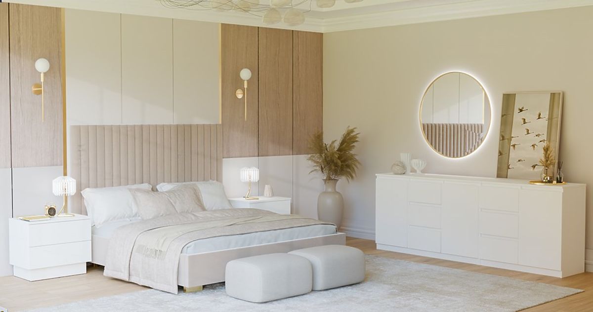 Grifflose Schubladen- und Türfronten sorgen für eine bequeme Nutzung und unterstreichen den modernistischen Charakter des Interieurs