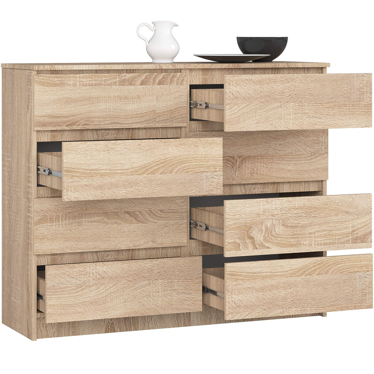 Banaby.at » Kindermöbel / Kinderkommoden und Schränke / Kinderkommoden / KOMMODE K 120 cm 8 SCHUBLADEN PK EICHE SONOMA