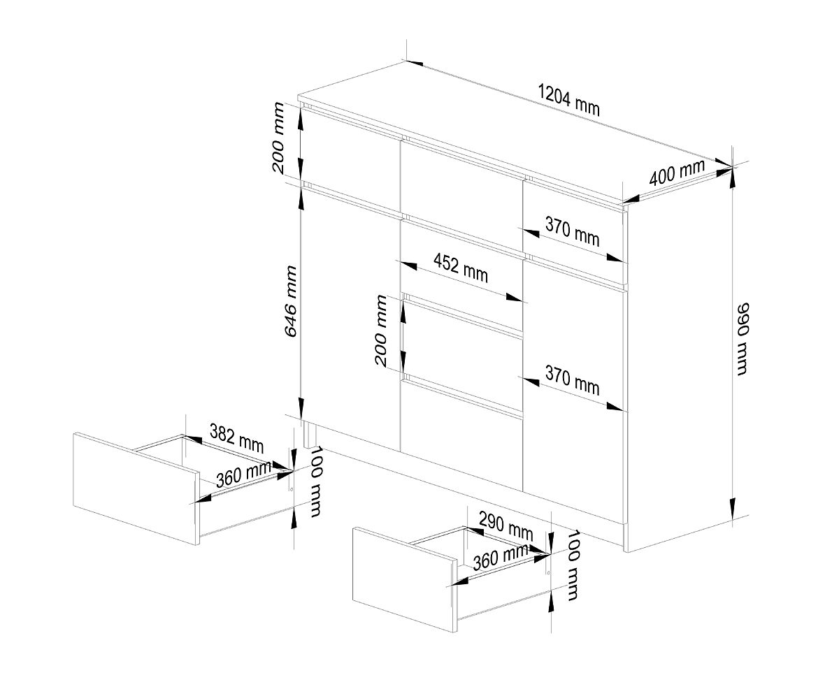 - Kommode aus hochwertigem 16 mm abriebfestem laminiertem Plattenmaterial