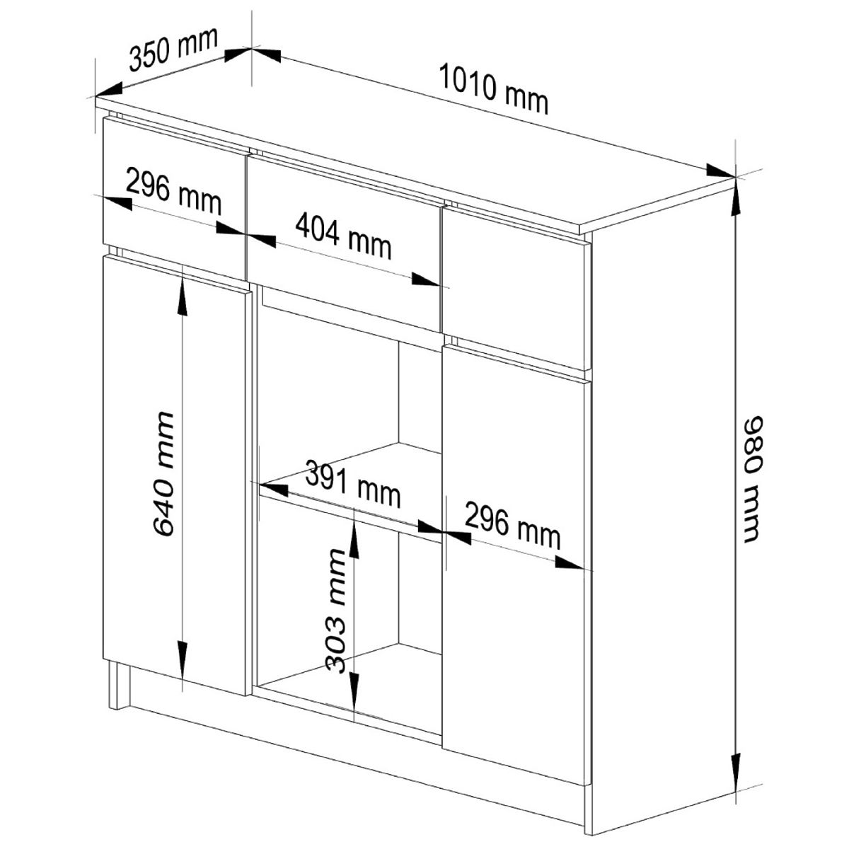 KOMMODE K100 Hergestellt aus 16mm abriebfestem laminiertem Plattenmaterial.