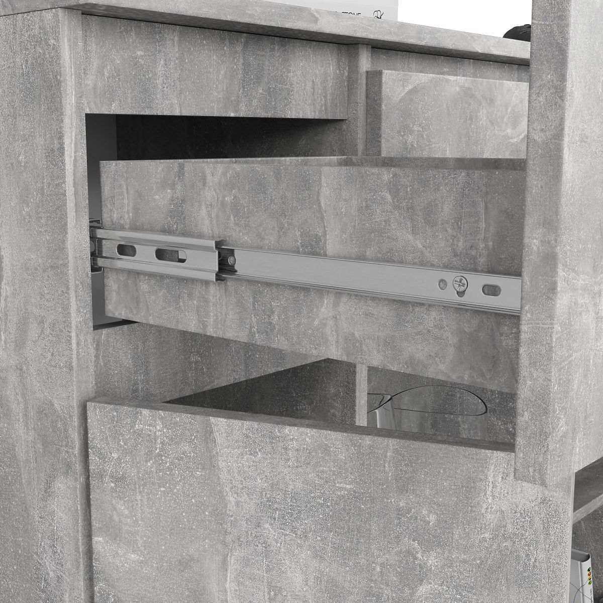 - Schubladen laufen auf Metallkugelführungen
