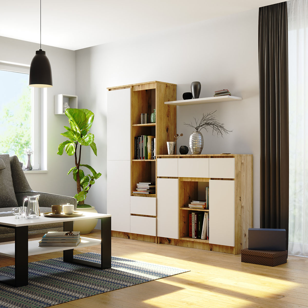 Banaby.at » Kindermöbel / Kinderkommoden und Schränke / Kinderkommoden / KOMMODE K100 2D 3SZ 1P PK EICHE ARTISAN / WEISS