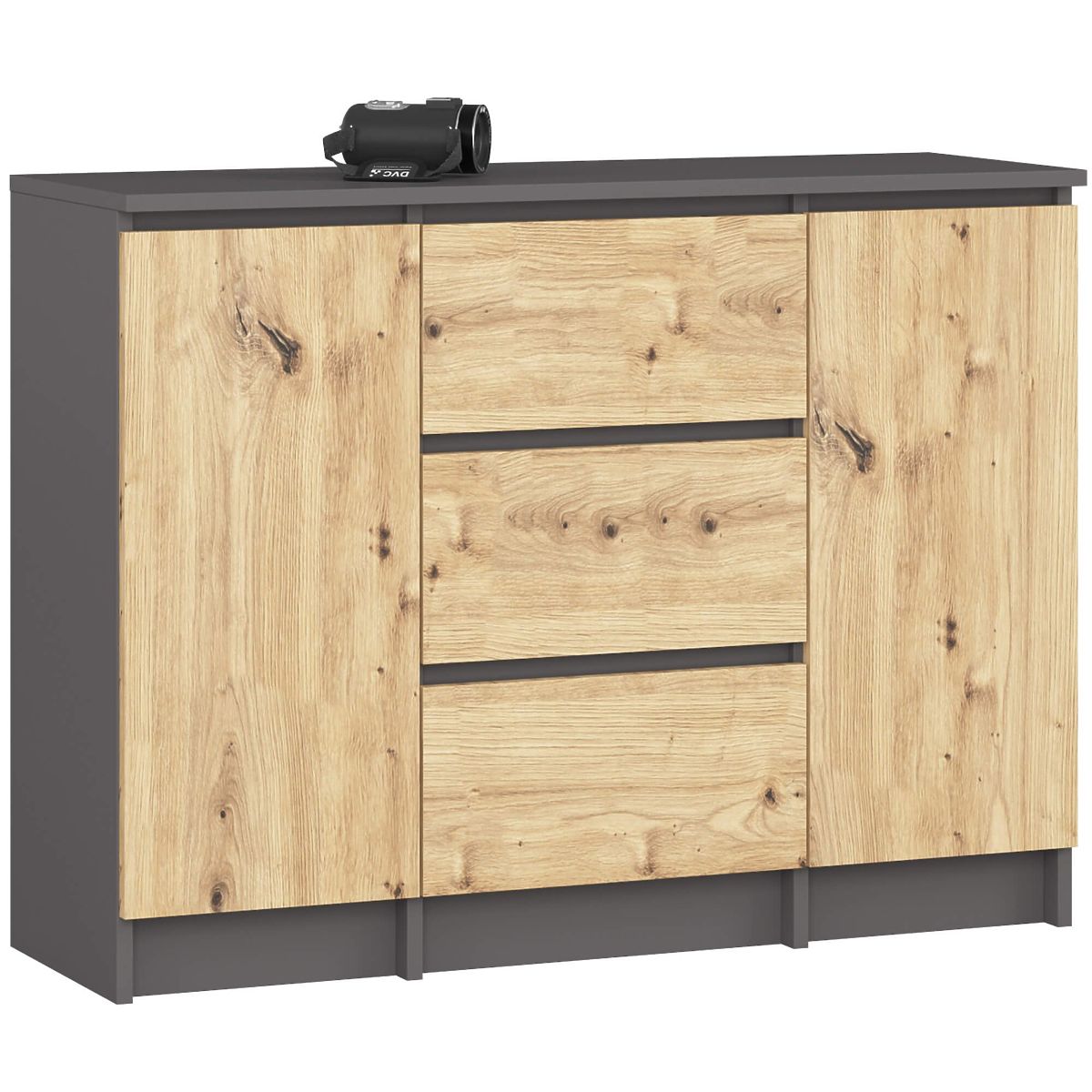 Banaby.at » Kindermöbel / Kinderkommoden und Schränke / Kinderkommoden / KOMMODE K100 2D 3SZ PK GRAPHIT GRAU / EICHE ARTISAN