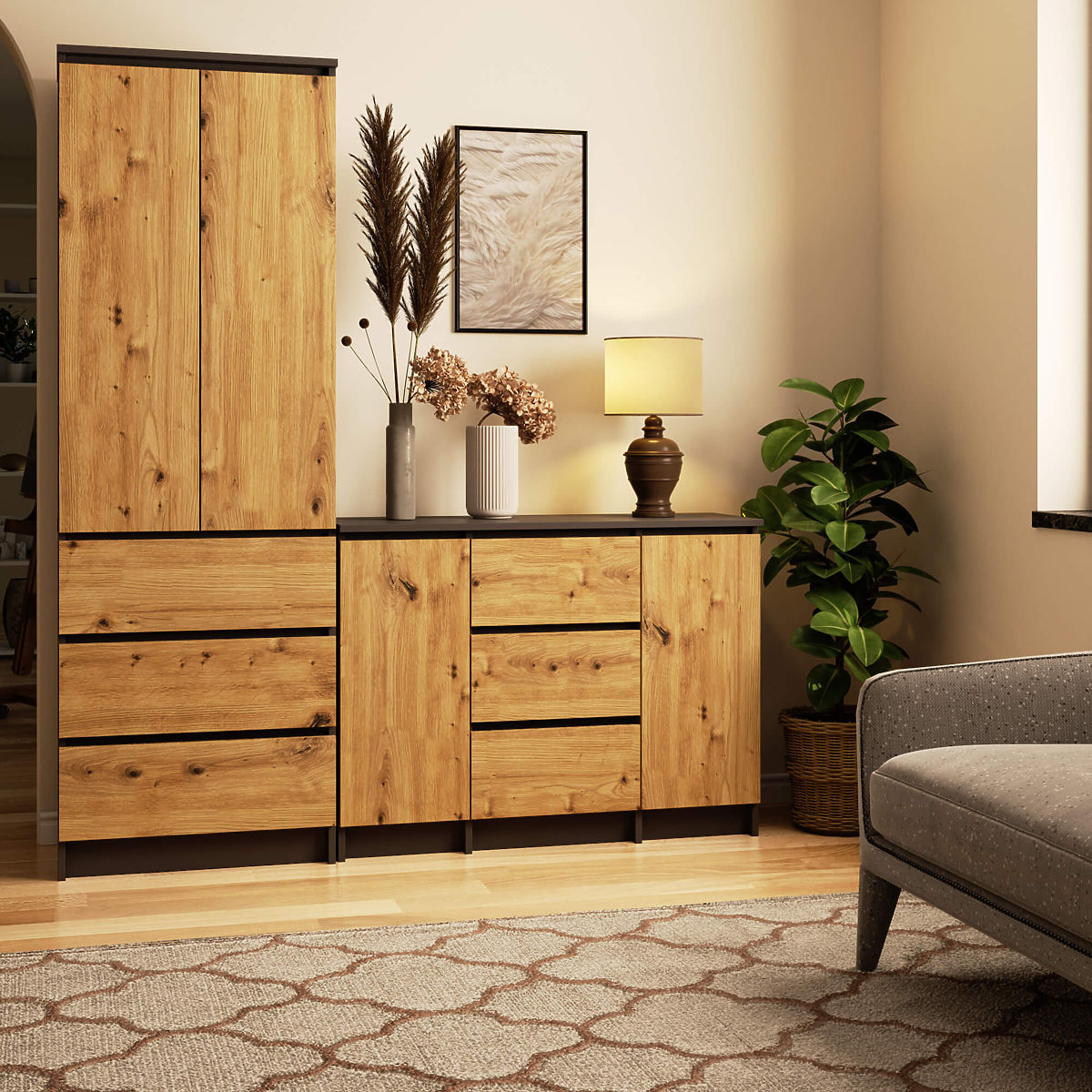 Kommode mit 3 Schubladen und 2 Türen, Graphit Grau/Eiche Artisan. .. mehr