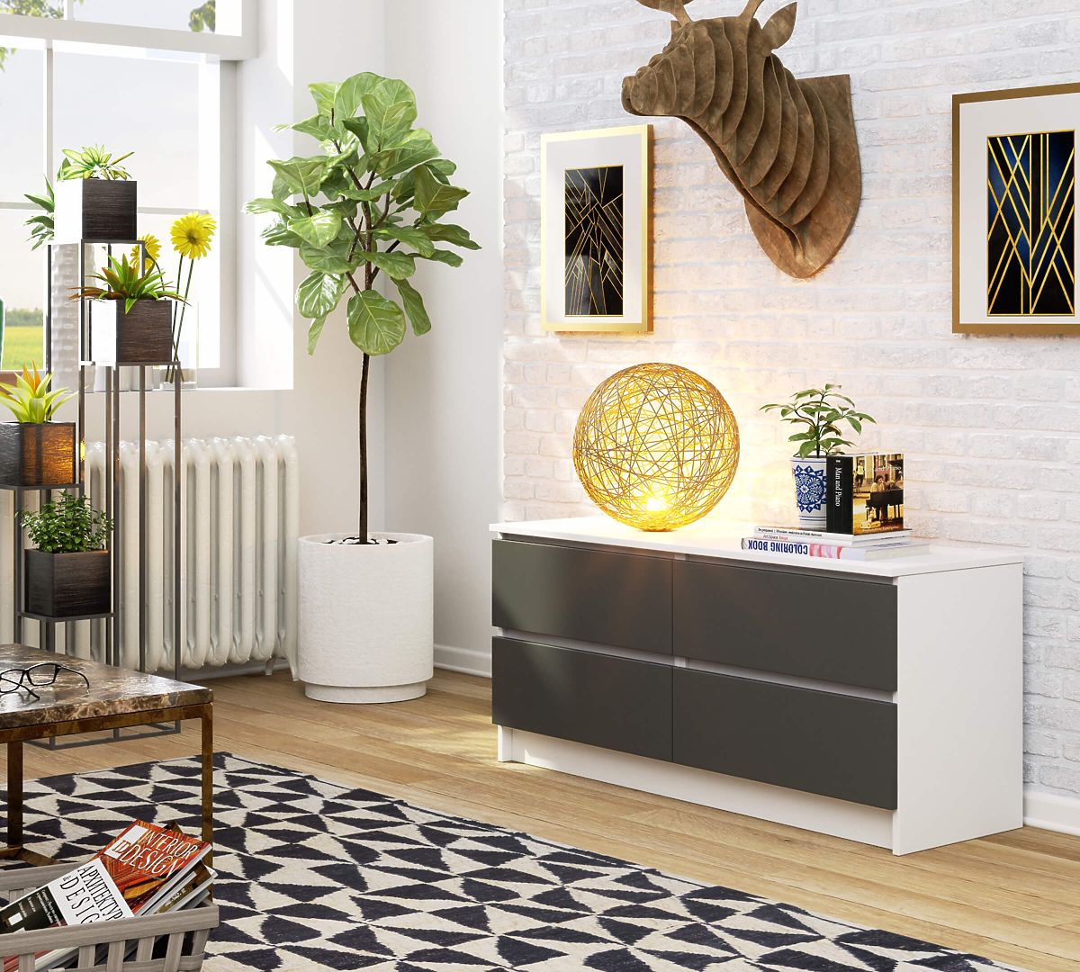 Kommode mit 4 Schubladen, in Weiß und Graphit Grau. .. mehr