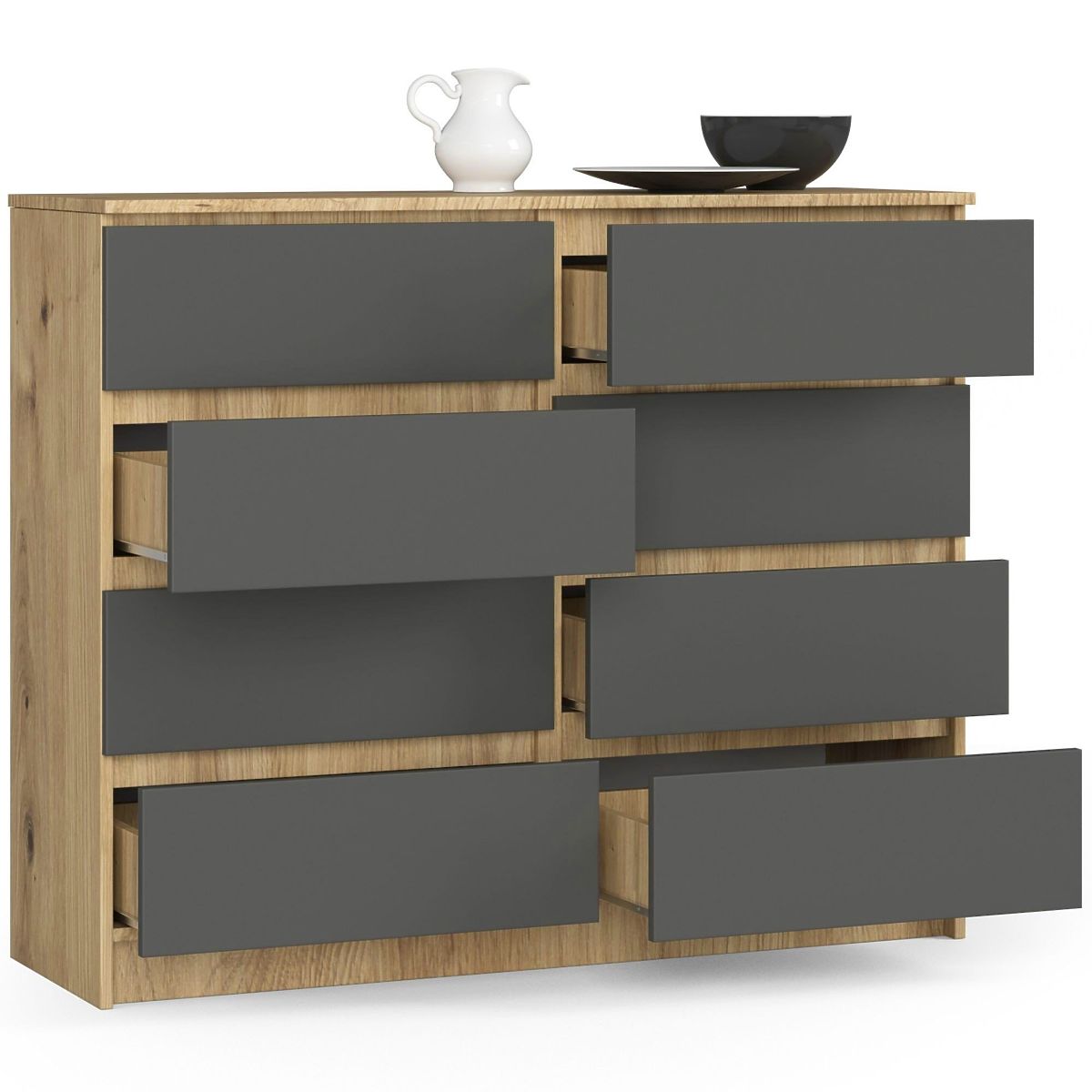 Banaby.at » Kindermöbel / Kinderkommoden und Schränke / Kinderkommoden / KOMMODE K120 8SZ CLP PK EICHE ARTISAN / GRAU