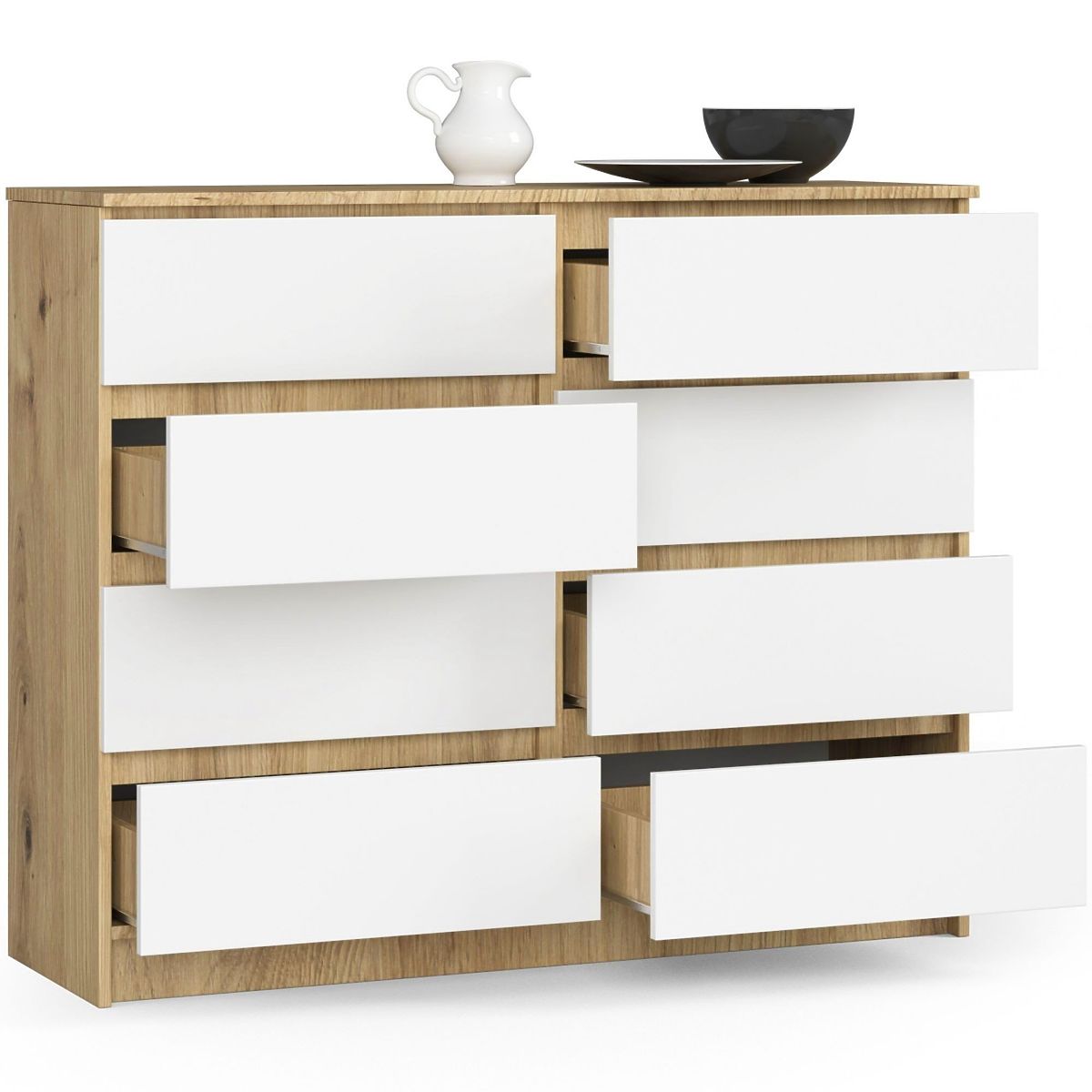Banaby.at » Kindermöbel / Kinderkommoden und Schränke / Kinderkommoden / KOMMODE K120 8SZ CLP PK EICHE ARTISAN / WEISS