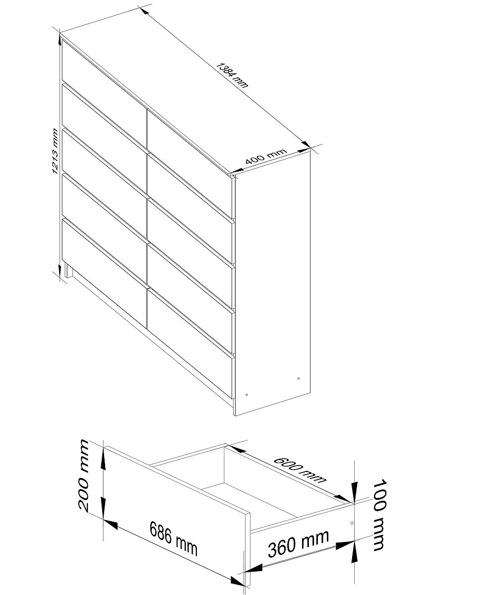Am häufigsten werden die Kanten von Schränken beschädigt - sie können leicht gestoßen, eingerissen oder zerkratzt werden. Um dies zu verhindern, sind die Kanten der Kommode zusätzlich mit einer ABS-Kante beklebt, die noch höheren Schutz gegen Beschädigungen bietet. Das bedeutet, dass das Möbelstück auch bei täglichem Gebrauch viele Jahre lang dient und immer noch wie neu aussieht.