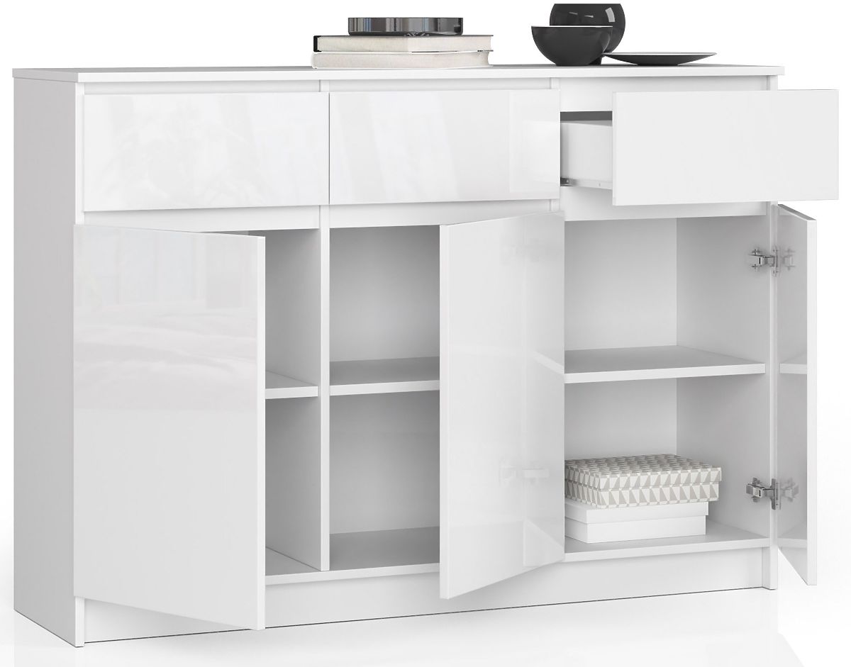 Banaby.at » Kindermöbel / Kinderkommoden und Schränke / Kinderkommoden / KOMMODE K140 3D 3SZ CLP PK WEISS HOCHGLANZ