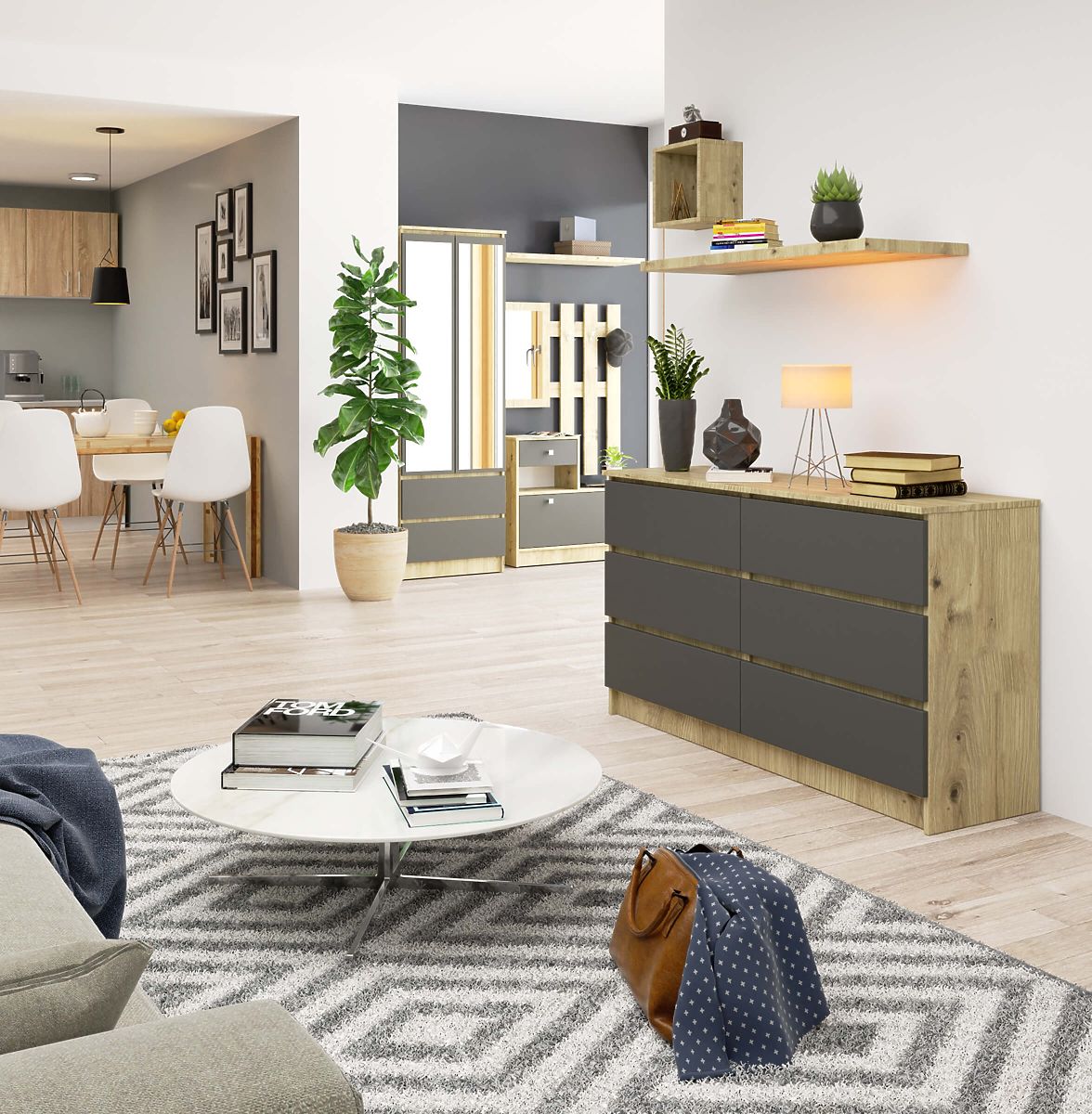 Banaby.at » Kindermöbel / Kinderkommoden und Schränke / Kinderkommoden / KOMMODE K140 6SZ CLP EICHE ARTISAN / GRAU