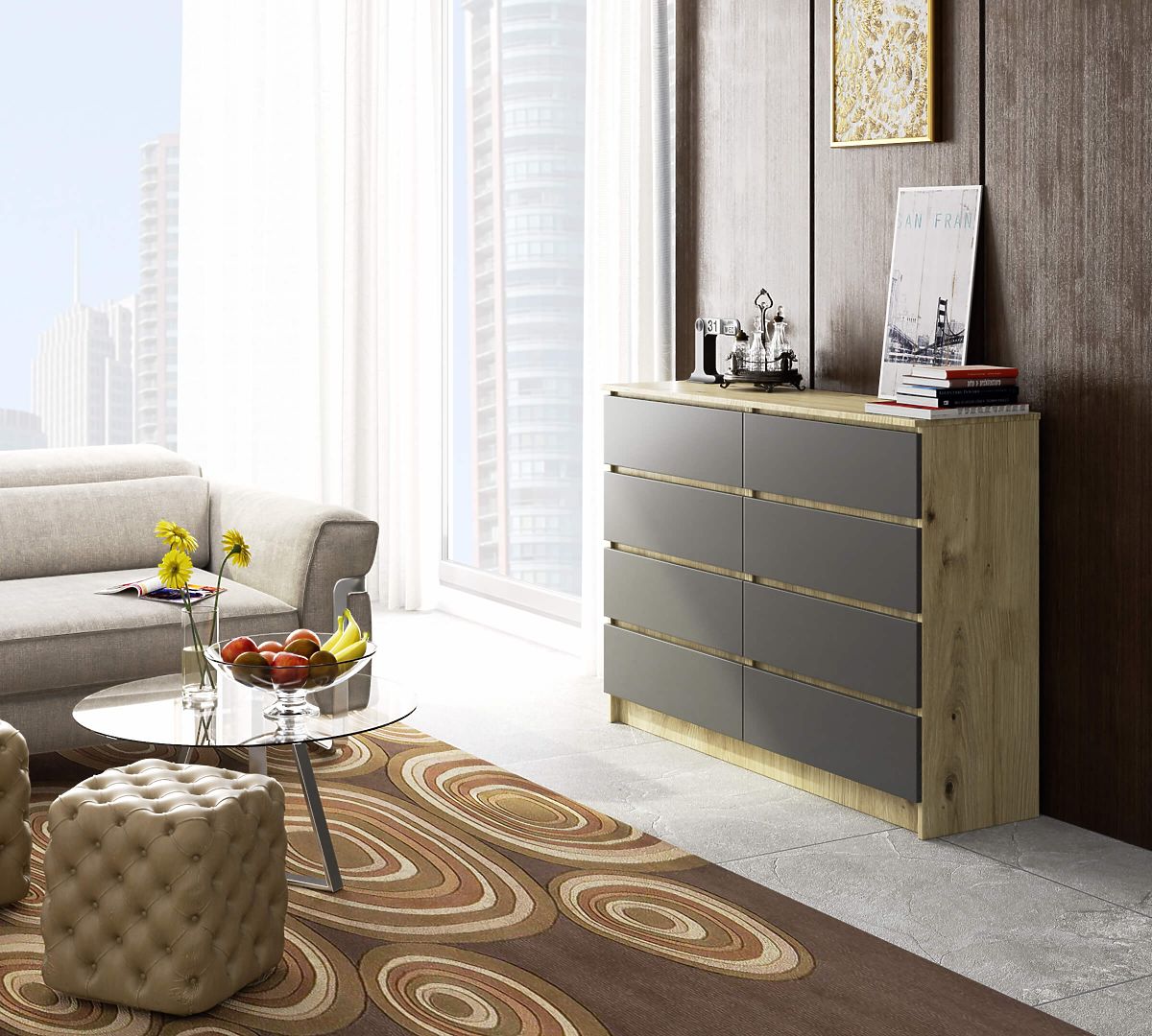 Banaby.at » Kindermöbel / Kinderkommoden und Schränke / Kinderkommoden / KOMMODE K140 8SZ CLP EICHE ARTISAN / GRAU