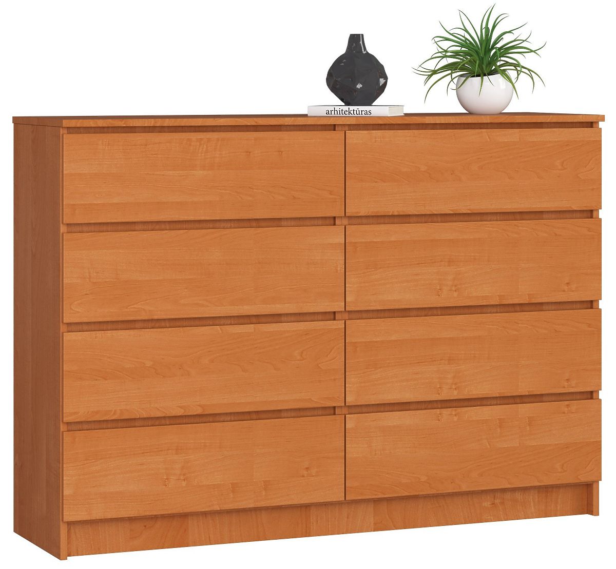 Die Kommode K140 in der Farbe Erle ist für Liebhaber traditionell eingerichteter Innenräume gedacht. Die universelle Farbe und die einfachen Formen der Möbel sorgen dafür, dass sie sich sehr gut für Räume wie Büros, Hotelzimmer, aber auch Wohnräume - Wohnzimmer, Schlafzimmer, Flure oder Esszimmer - eignen. Charakteristische Merkmale dieser Kommode sind vor allem das zeitlose Design, die robuste Konstruktion, die praktische Nutzung und die einfache Pflege. Das Produkt, ausgestattet mit acht geräumigen Schubladen, ermöglicht die Aufbewahrung von Dokumenten, Kleidung und vielen anderen notwendigen Gegenständen im jeweiligen Raum. Der günstige Preis der Möbel ist ein weiterer Vorteil. Wir empfehlen auch, sich mit weiteren Ausstattungsmerkmalen dieser Serie vertraut zu machen.