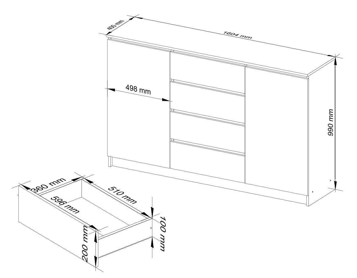 KOMMODE K160 2 TÜREN 4 SCHUBLADEN Große und geräumige Kommode im modernen Design.