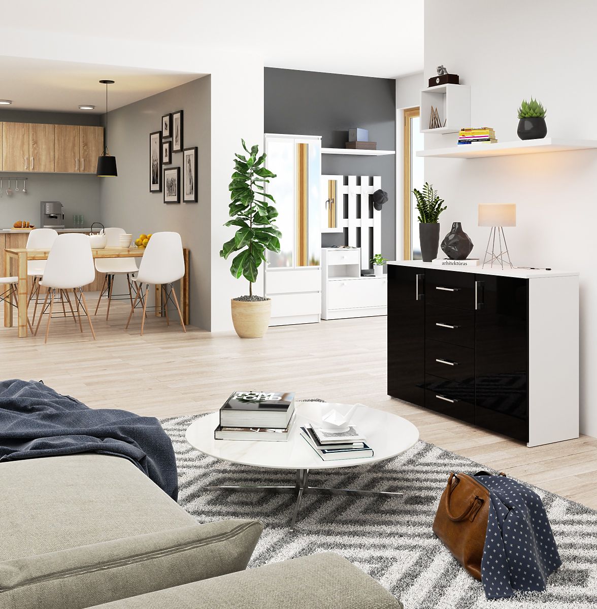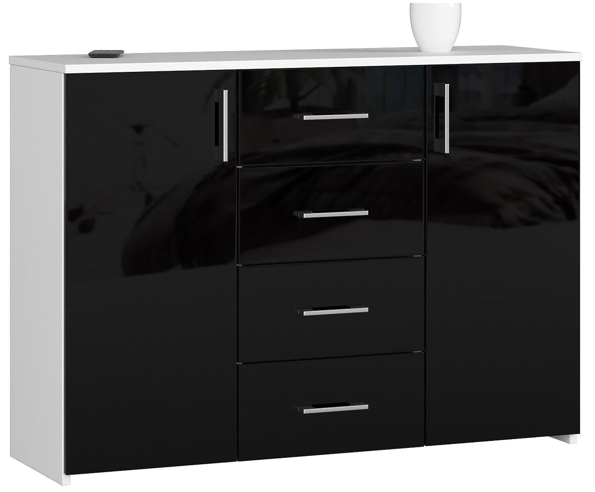 Schwarze Glanzkommode mit 4 Schubladen und 2 Türen. .. mehr
