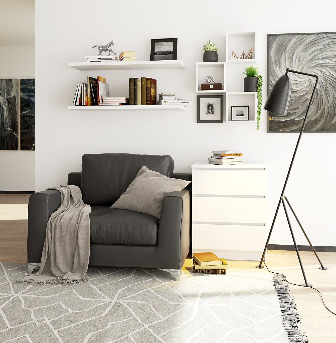 Weiße Kommode mit 3 Schubladen im skandinavischen Stil. .. mehr