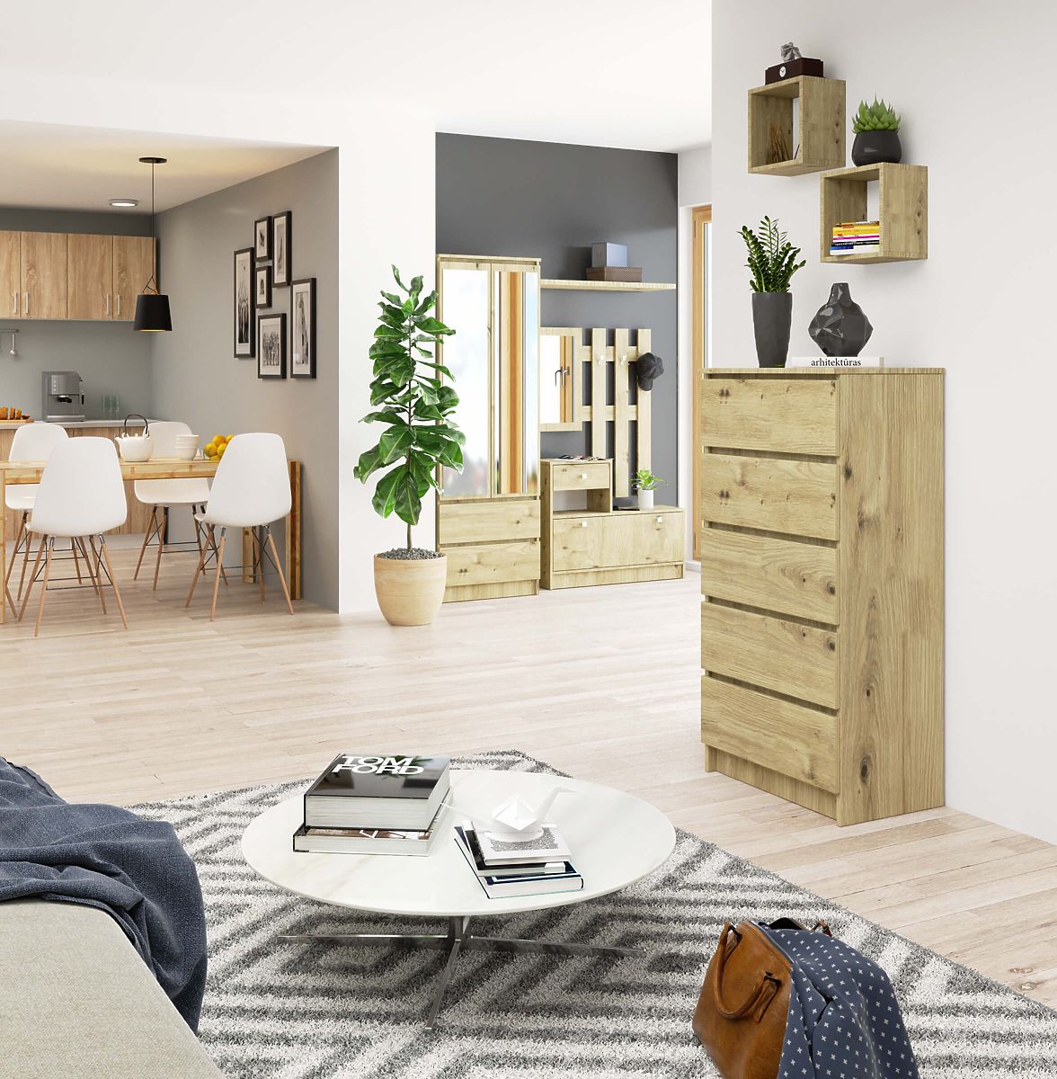 Kommode mit 5 Schubladen aus Eiche Artisan. .. mehr