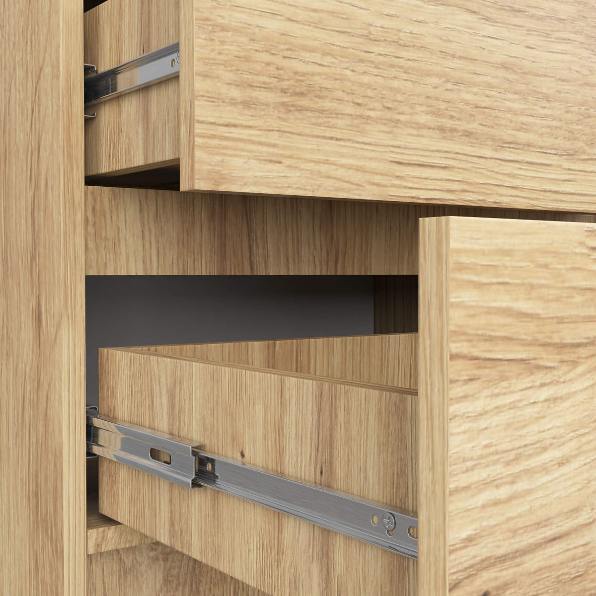 - Schubladen laufen auf Metallkugelführungen - Kanten mit ABS-Kante versehen für hohen Schutz vor Beschädigungen