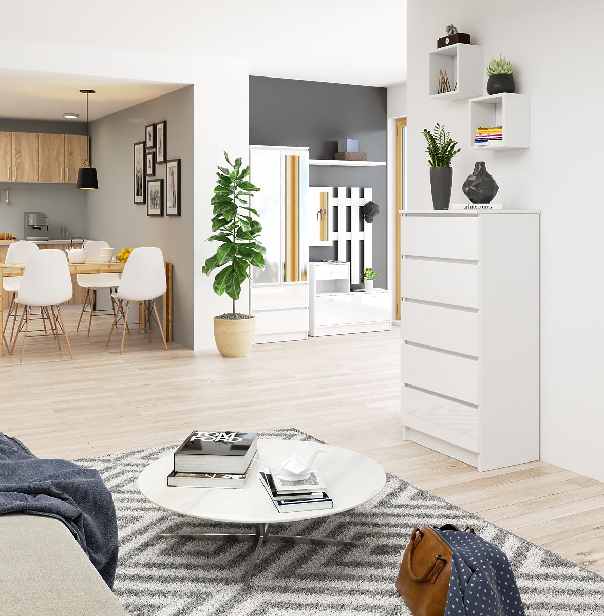Banaby.at » Kindermöbel / Kinderkommoden und Schränke / Kinderkommoden / KOMMODE K60 5SZ CLP PK WEISS HOCHGLANZ