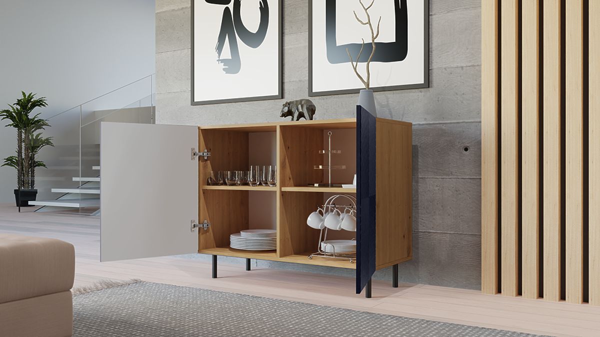 Das Innere der Kommode besteht aus Regalen, die bei der Organisation von Gegenständen helfen. So finden Sie leichter, wonach Sie suchen.