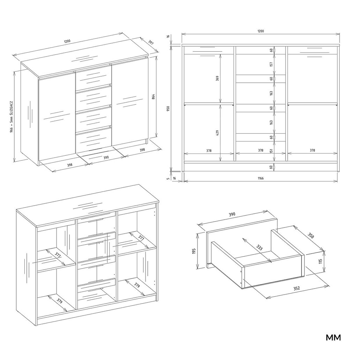 Banaby.at » Kindermöbel / Kinderkommoden und Schränke / Kinderkommoden / Kommode Malwa 2D4S 120 EICHE ARTISAN KASCHMIR BEIGE