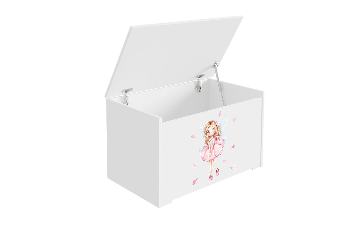 Banaby.at » Kindermöbel / Kinderkommoden und Schränke / Spielzeugtruhen / Spielzeugtruhe Daria weiß mit Druck Schlafende Prinzessin