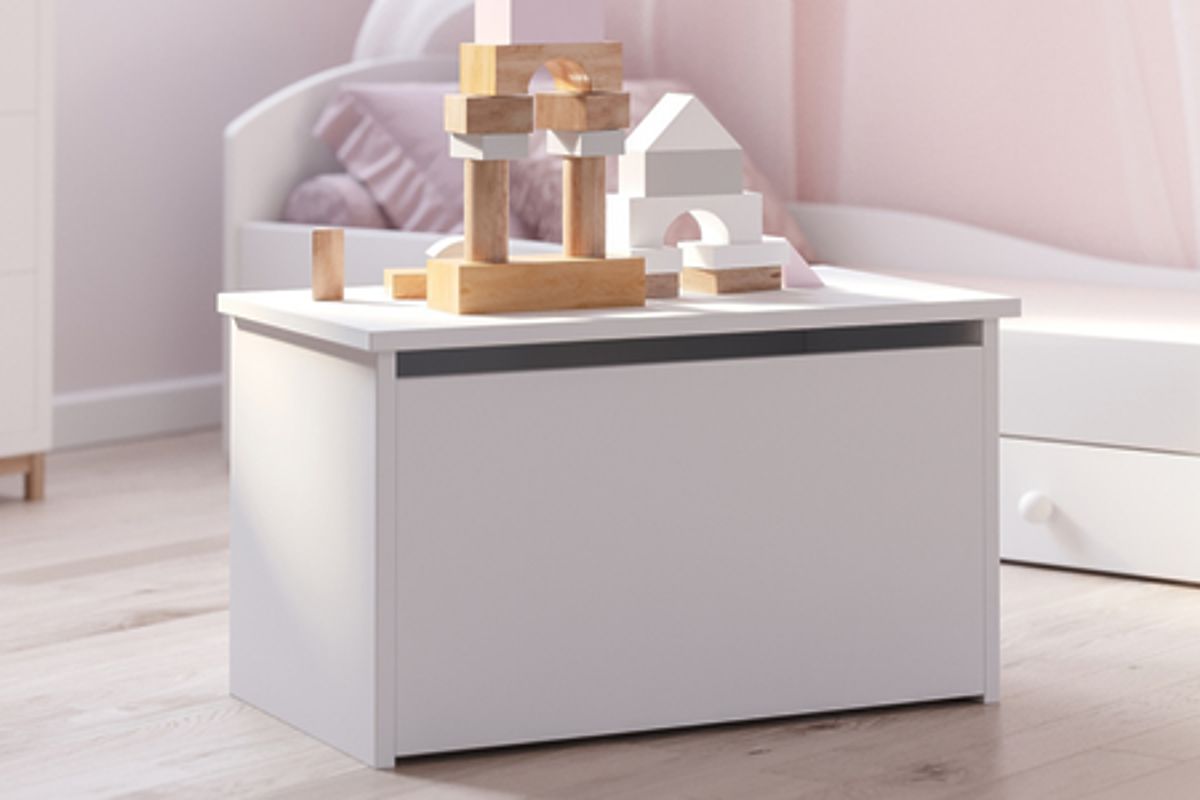 Die Spielzeugtruhe DARIA in universellem Weiß ist ein funktionelles Möbelstück, das hilft, Ordnung im Zimmer Ihres Kindes zu halten. Ihr modernes Design und die solide Verarbeitung sorgen dafür, dass sie perfekt in jedes Interieur passt, unabhängig vom Einrichtungsstil.