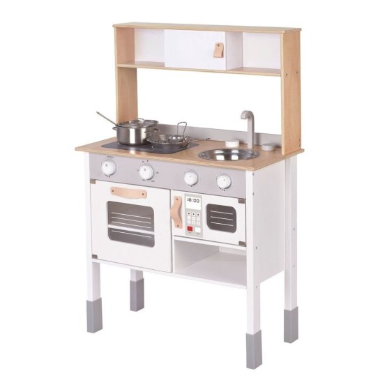 Eine Holzküche, die durch ihr Aussehen, Farben in sanften Grautönen und die Verarbeitungsqualität beeindruckt. Spielzeugfunktionen: entwickelt .. mehr