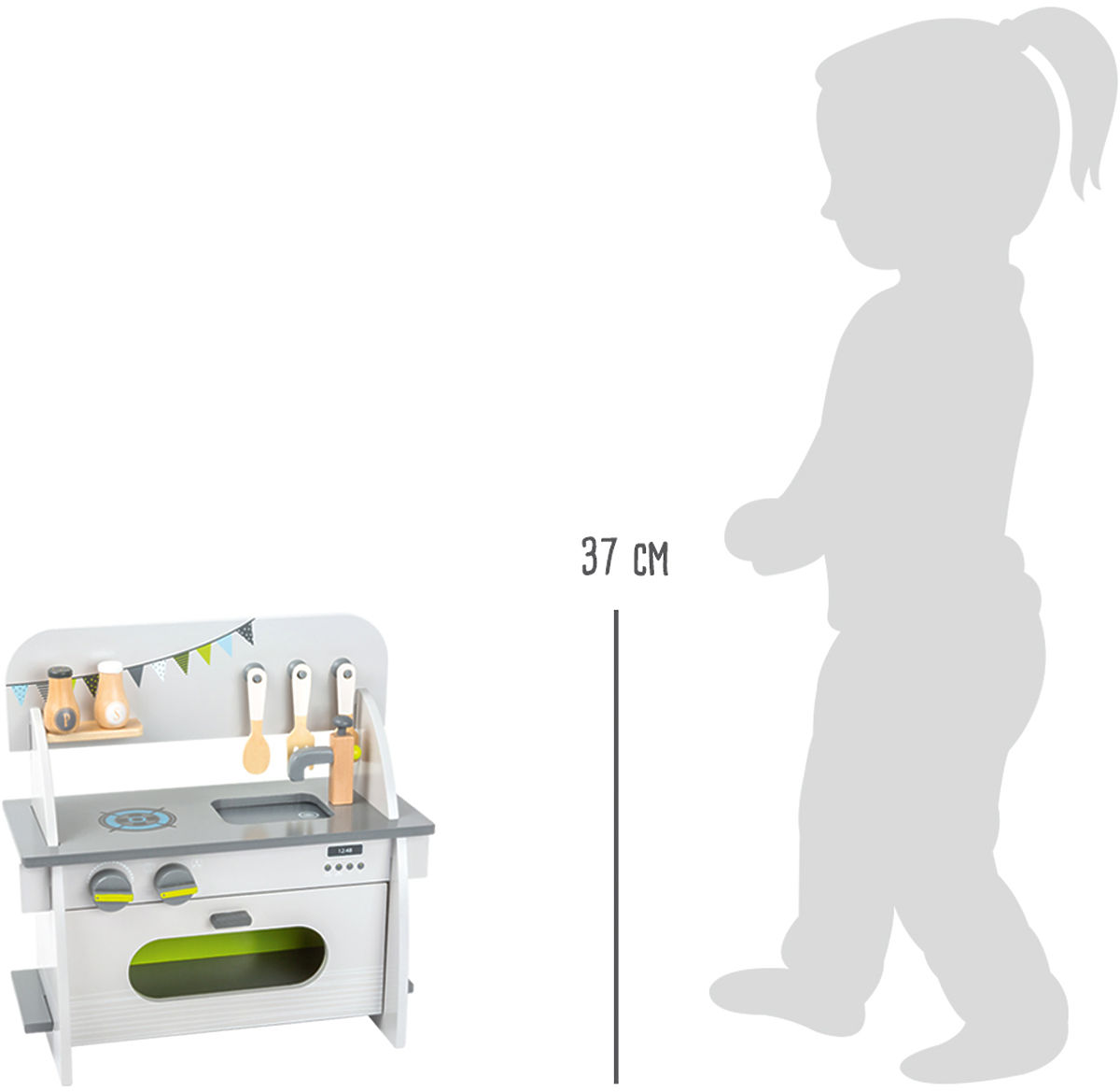 Das Kochen kann beginnen! Diese komplett ausgestattete Küche aus 100% FSC®-zertifiziertem Holz hat alles, was junge Köche für die Zubereitung eines Festmahls benötigen. Der Ofen ist mit passenden, öffnenden Türen ausgestattet. Auf dem Herd befindet sich ein Topf mit abnehmbarem Deckel. Salz- und Pfefferstreuer sorgen für die nötige Würze. Diese Küche kann ohne Werkzeug zusammen- und auseinandergebaut werden. Wer würde mit dieser Küche nicht gerne kochen? Hauptmerkmale: kompakte Abmessungen, Zubehör inklusive, einfaches elegantes Design, das in jedes Zimmer passt, der Ofen schließt und öffnet sich mit einem Magneten, beim Drehen der Knöpfe am Herd ertönt ein Klicken. Die Marke und das FSC®-Zertifikat (Forest Stewardship Council) garantieren, dass das Holz, aus dem das Produkt hergestellt wurde, nicht illegal abgeholzt wurde und aus Wäldern stammt, die schonend oder naturnah bewirtschaftet werden, wobei strenge Umwelt- und Sozialanforderungen eingehalten werden. Das FSC®-Label auf dem Produkt bedeutet, dass Sie mit Ihrem Kauf helfen, die Wälder zu schützen und eine schonende, verantwortungsvolle oder naturnahe Bewirtschaftung zu unterstützen, wodurch unsere Wälder stabiler, gesünder werden, eine natürliche Artenzusammensetzung haben und besser den negativen Folgen des Klimawandels standhalten.