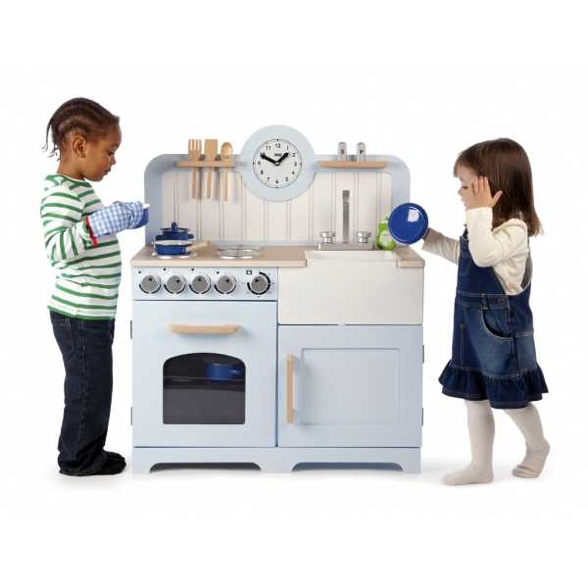 Junge angehende Köche werden das Kochen und Backen mit dieser Holzküche genießen! Sie ist mit vier Kochplatten ausgestattet, die mit Drehknöpfen bedient werden, .. mehr