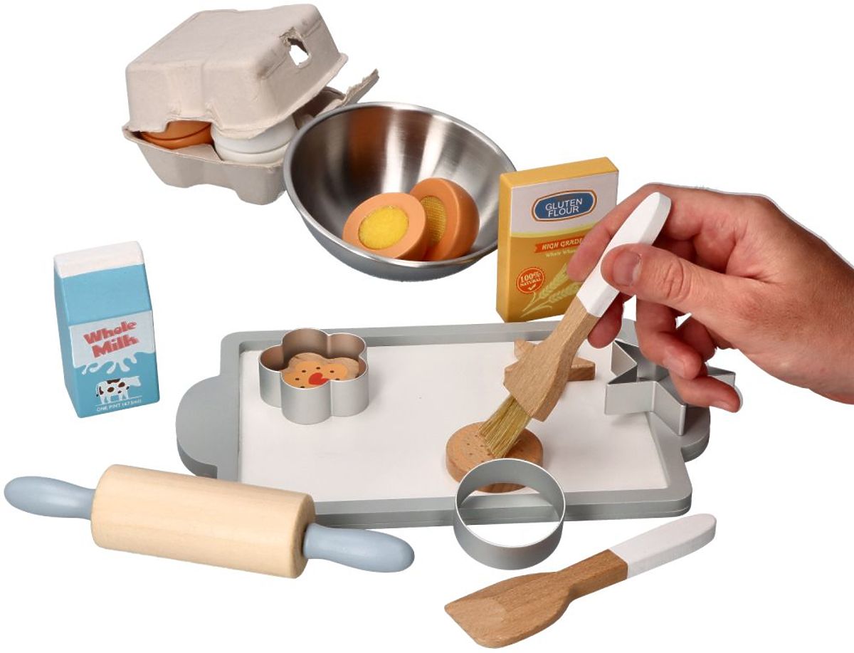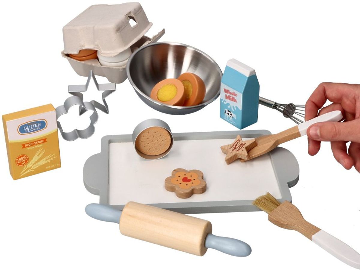 Ihr Kind liebt es, Ihnen beim Backen oder Verzieren von Keksen zu assistieren? Wenn ja, ist das Set von VIGA das ideale Geschenk für ihn! Mit all diesen Zubehörteilen kann jeder kleine Konditor oder Koch nach Belieben mischen, messen, rollen und mit Ausstechformen schneiden - mit einem Wort, seine eigenen kleinen kulinarischen Meisterwerke schaffen! So können Sie nicht nur viel Spaß haben, sondern auch lernen, echte Kekse zu backen :)