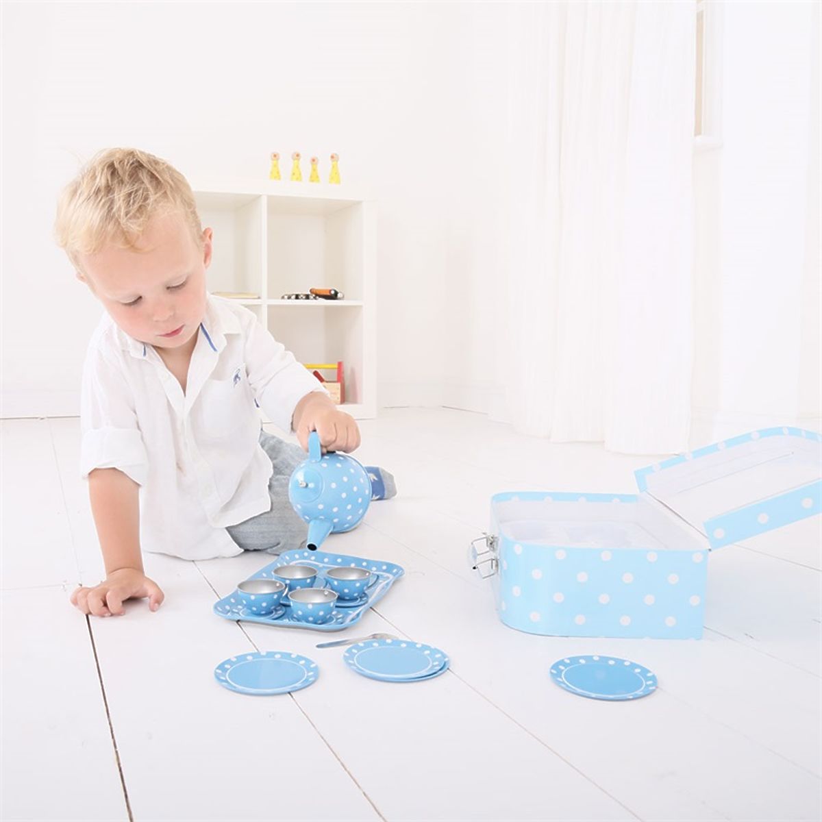 Bigjigs Toys Blaues gepunktetes Tee-Set