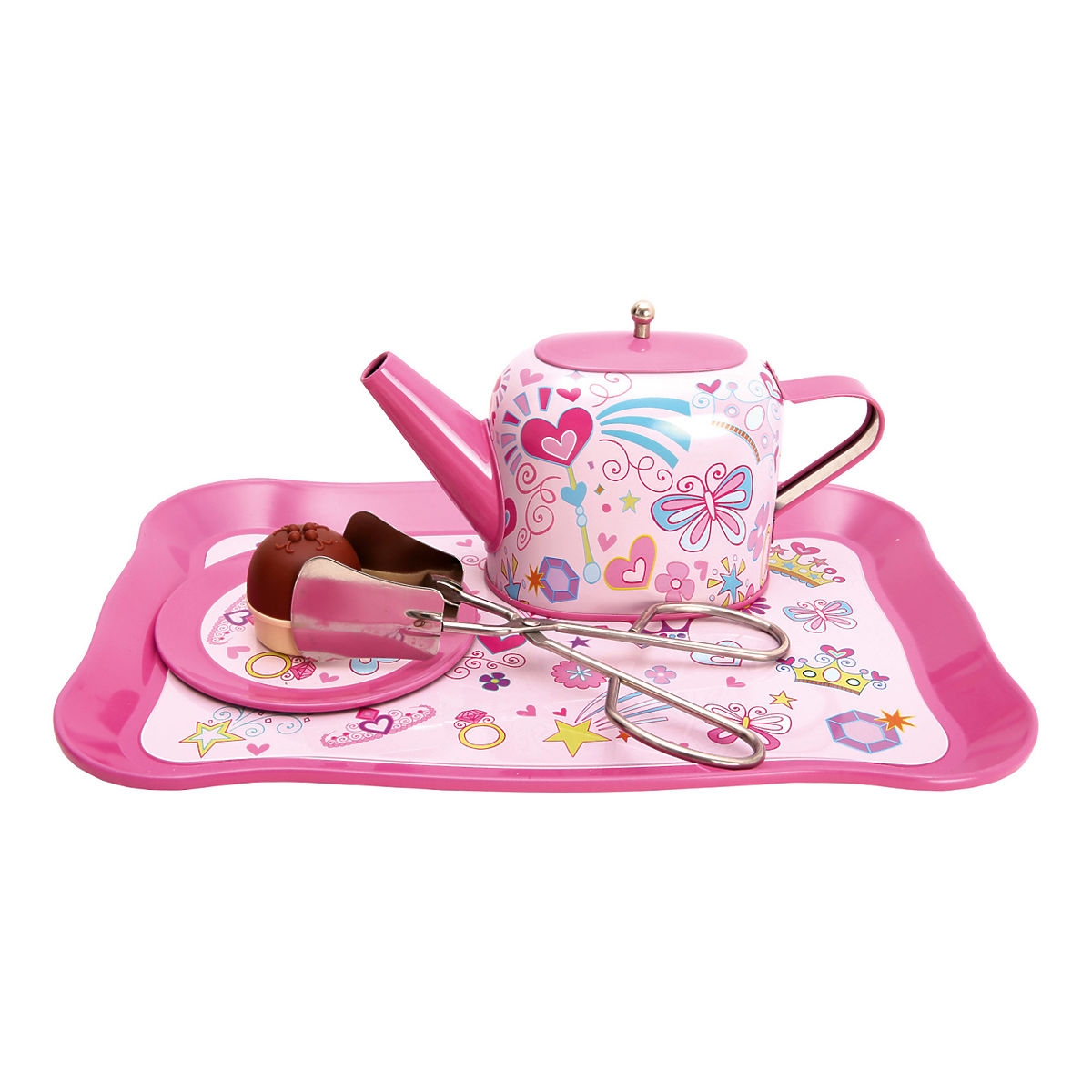 Es ist Zeit für einen zauberhaften Teekränzchen für Eltern, Puppen und Kuschelfreunde! Mit dem umfangreichen Teeservice können Kinder ihre Fantasie sowie soziale und kommunikative Fähigkeiten entwickeln. Das Set ist detailliert dekoriert, aus robustem, leichtem Metall und unbedenklichem Kunststoff gefertigt. Hauptmerkmale: Service für 4 Personen, insgesamt 35 Teile, robustes Design