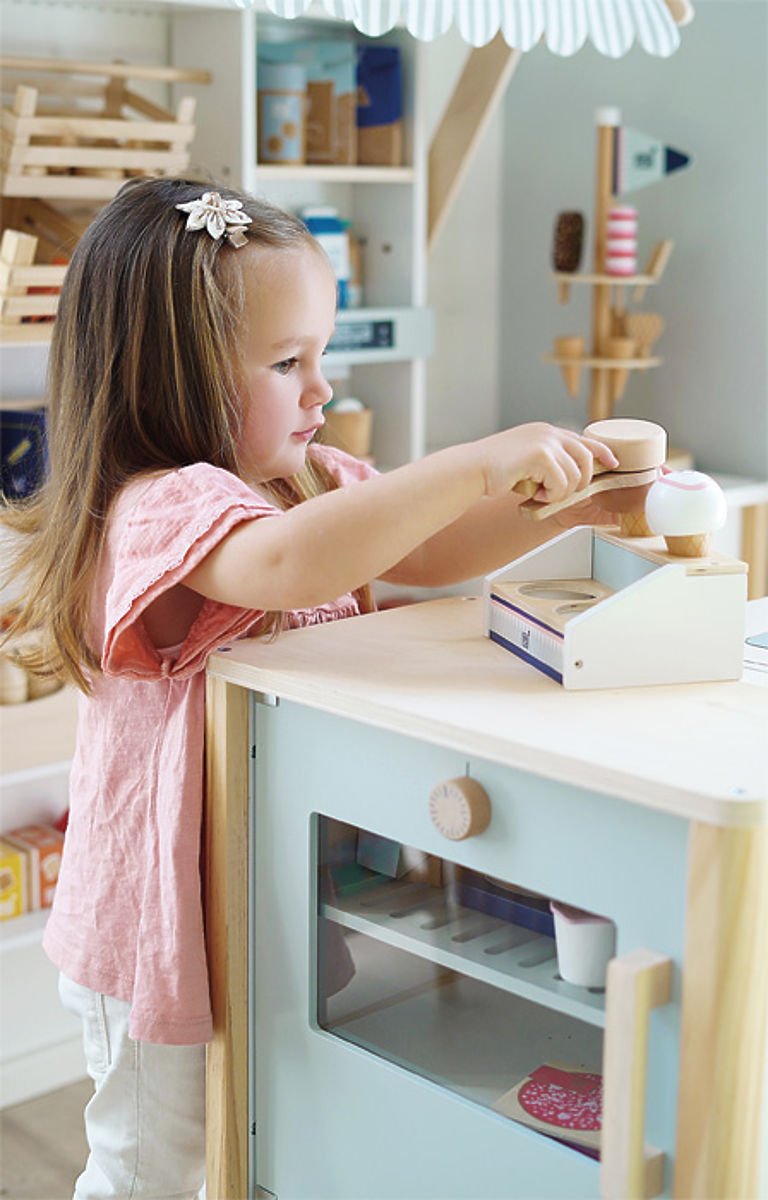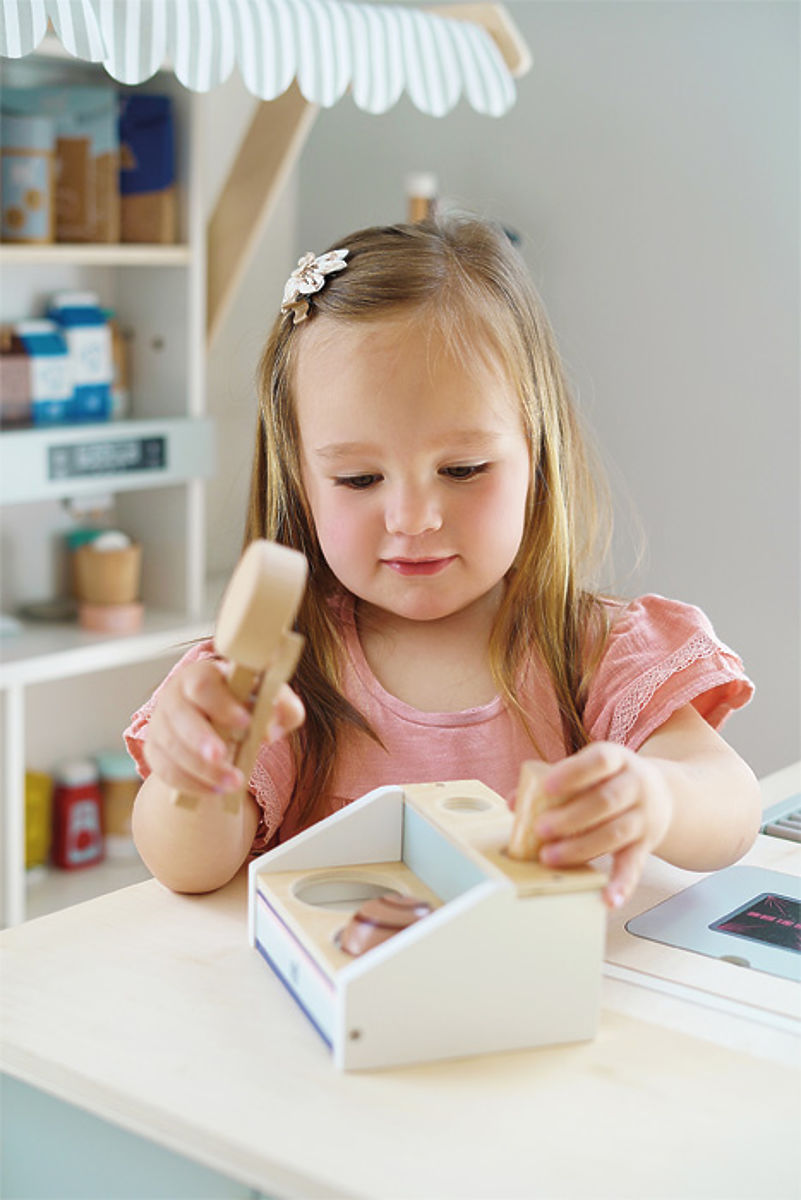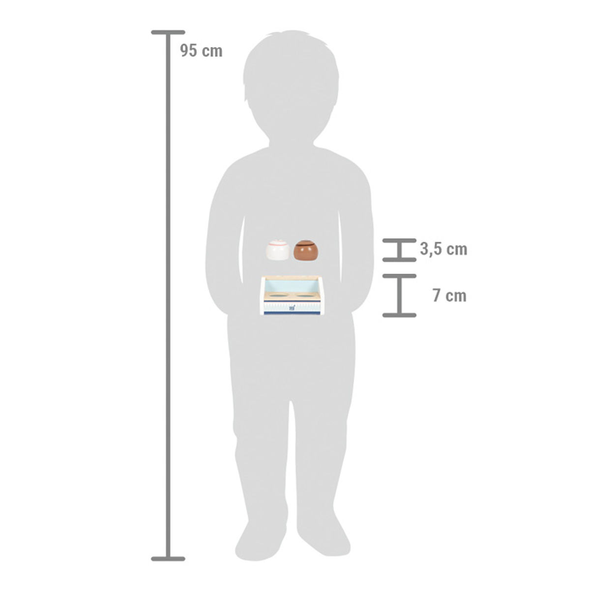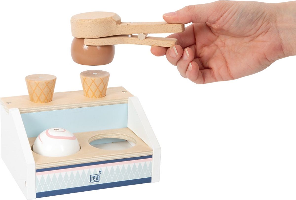 Heute gibt es Eiscreme! Dieses Display mit zwei Fächern passt dank seines minimalistischen Designs und natürlichen Materials wunderbar in die kleinen Küchen jedes Kinderzimmers! Es enthält einen Portionierer, Waffelhörnchen und stapelbare Eiskugeln (diese Kugeln können dank ihrer Magnete ebenfalls gestapelt werden). Das Highlight des Spielsets ist der magnetische Eislöffel – mit nur einem Knopfdruck kann das Eis auf das Hörnchen gesetzt werden! Hauptmerkmale: geschlechtsneutrales Farbschema, geeignetes Zubehör für die Produkte LE11815, LE12417 oder LE12232, Portionierer, Waffelhörnchen und stapelbare Eiskugeln haben Magnete, das Spiel fördert Kommunikationsfähigkeiten und Kreativität