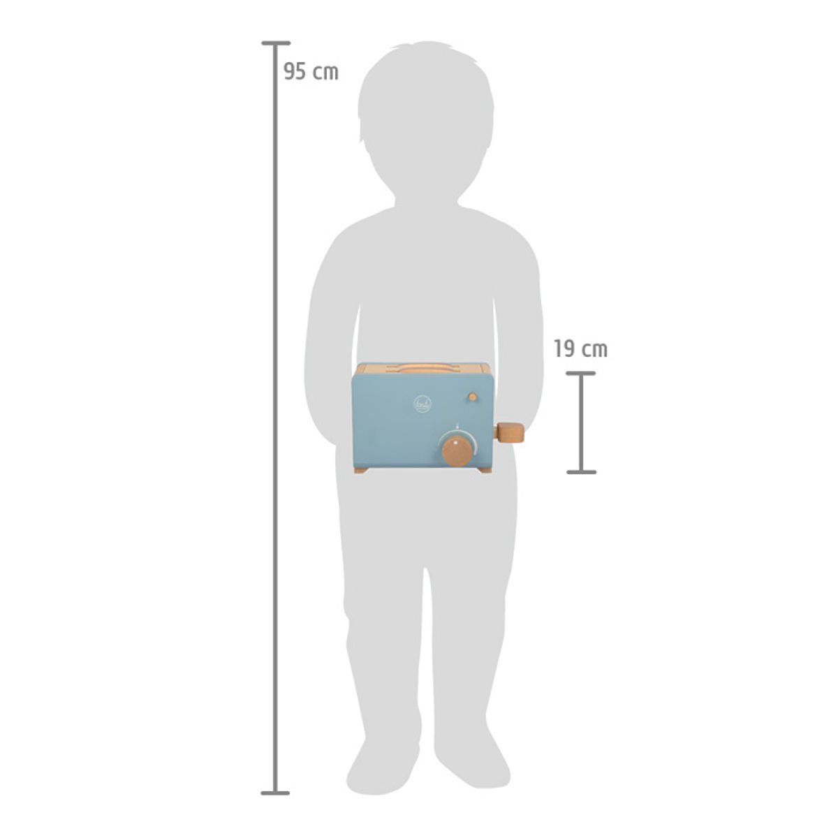 Mit diesem Toaster und seinem Zubehör wird jedes Frühstück in der Kinderküche zum Hit! Er verfügt über eine Pop-up-Funktion und ein sanftes Design in Rauchblau und Weiß, das Spielzeug enthält auch viel Naturholz. Zum umfangreichen Zubehör gehören Toastscheiben, ein Messer, Butter und Marmelade, was bei realistischem Spiel hilft! Der Toaster hat drehbare und bewegliche Knöpfe und einen Hebel. Die Toastscheiben werden mit einem großen Hebel an der Seite in den Toaster eingeführt und ebenso wieder herausgenommen. Mit einem drehbaren Klickknopf können Kinder die Temperatur einstellen. Das Frühstücksbrettchen kann dank einer Öffnung aufgehängt werden und nimmt so beim Verstauen weniger Platz ein. Dieses Set hat ein farbenfrohes Design, das mit anderen Produkten der Tasty-Reihe von Small Foot, wie der Holzküche LE12216, kompatibel ist. Hauptmerkmale: Holztoaster mit Pop-up-Funktion, umfangreiches Zubehör – Toastscheiben, Messer, Brettchen, Butter, Marmelade, drehbarer Klickknopf, Marmelade passt perfekt in die Aussparung des Brettchens, passt zu anderen Produkten der Tasty-Produktreihe, trainiert alltägliche und soziale Fähigkeiten beim fantasievollen Spiel.