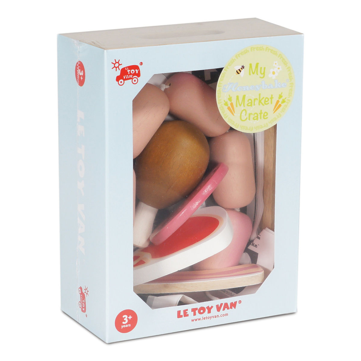 Holzkiste mit Essen als Spielzeug, enthält: Würstchen, Steak, Hähnchen, Salami und Speck. Die perfekte Ergänzung für Kindermarktstände und Küchen. Passt gut zu anderen Le Toy Van Boxen, in denen Sie zum Beispiel Fisch, Gemüse, Obst, Gebäck oder Eier finden können. Hauptmerkmale: Holzkiste mit Fleisch Kompatibel mit anderen Honeybake-Produkten - Küchenausstattung, Verkaufsständer Spielzeug unterstützt Kreativität, Vorstellungskraft, hilft bei der Entwicklung von Sprache und sozialen Fähigkeiten Aus langlebigem und nachhaltigem Kautschukholz - langanhaltender Spaß und Pflege für unseren Planeten Bemalt mit ungiftigen Farben, getestet nach den strengsten Standards Honeybake-Kollektion Die Spielzeuge dieser Kollektion eignen sich zum Entdecken und helfen Kindern dabei, Vorstellungskraft, soziale und verbale Fähigkeiten und kognitive Funktionen zu entwickeln. Das traditionelle Design mit modernen Details wird Kindern sicherlich Spaß machen. Honeybake ist die Le Toy Van-Kollektion, die die meisten Auszeichnungen für Design, Qualität, Sicherheit sowie Lern- und Spielwert gewonnen hat.