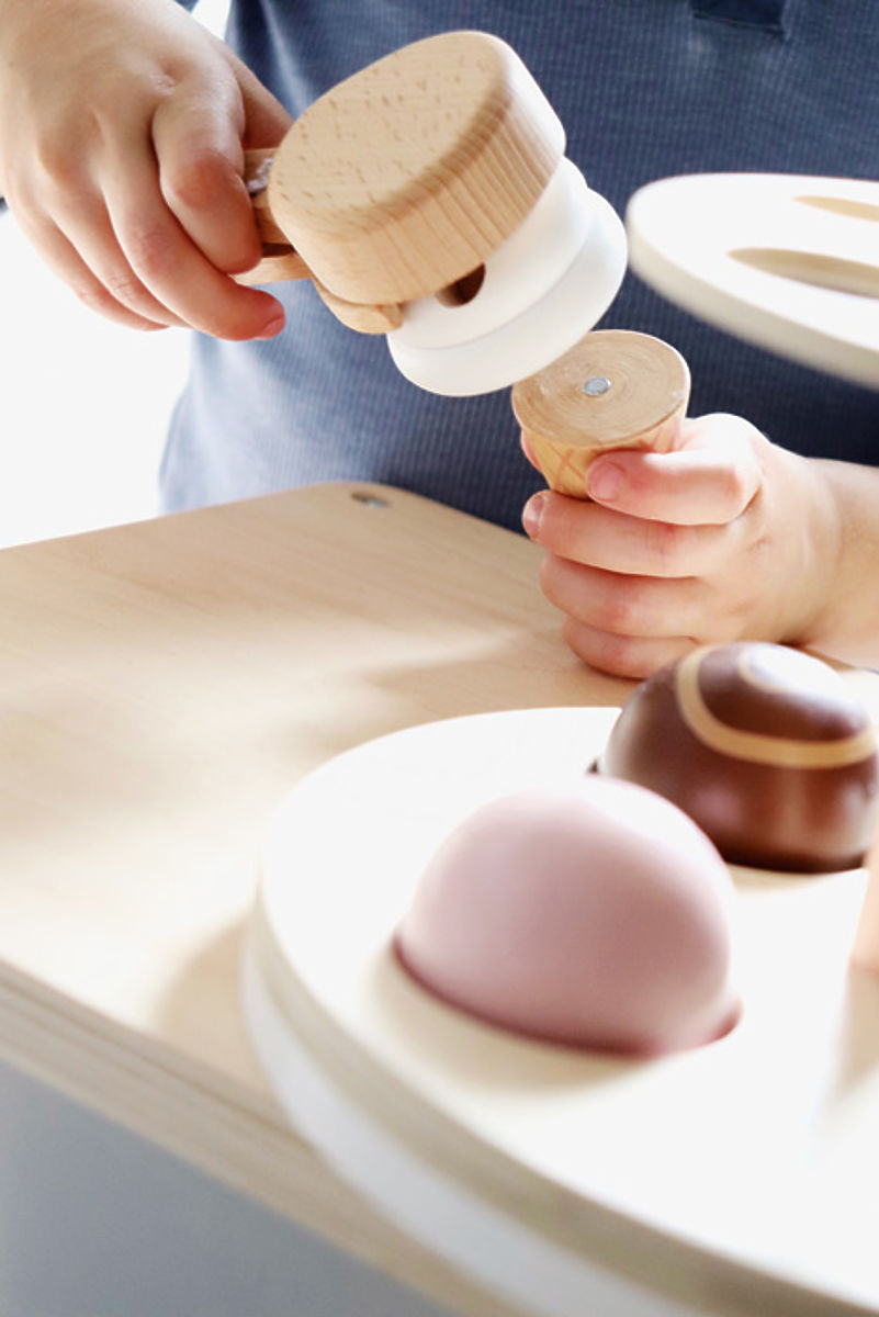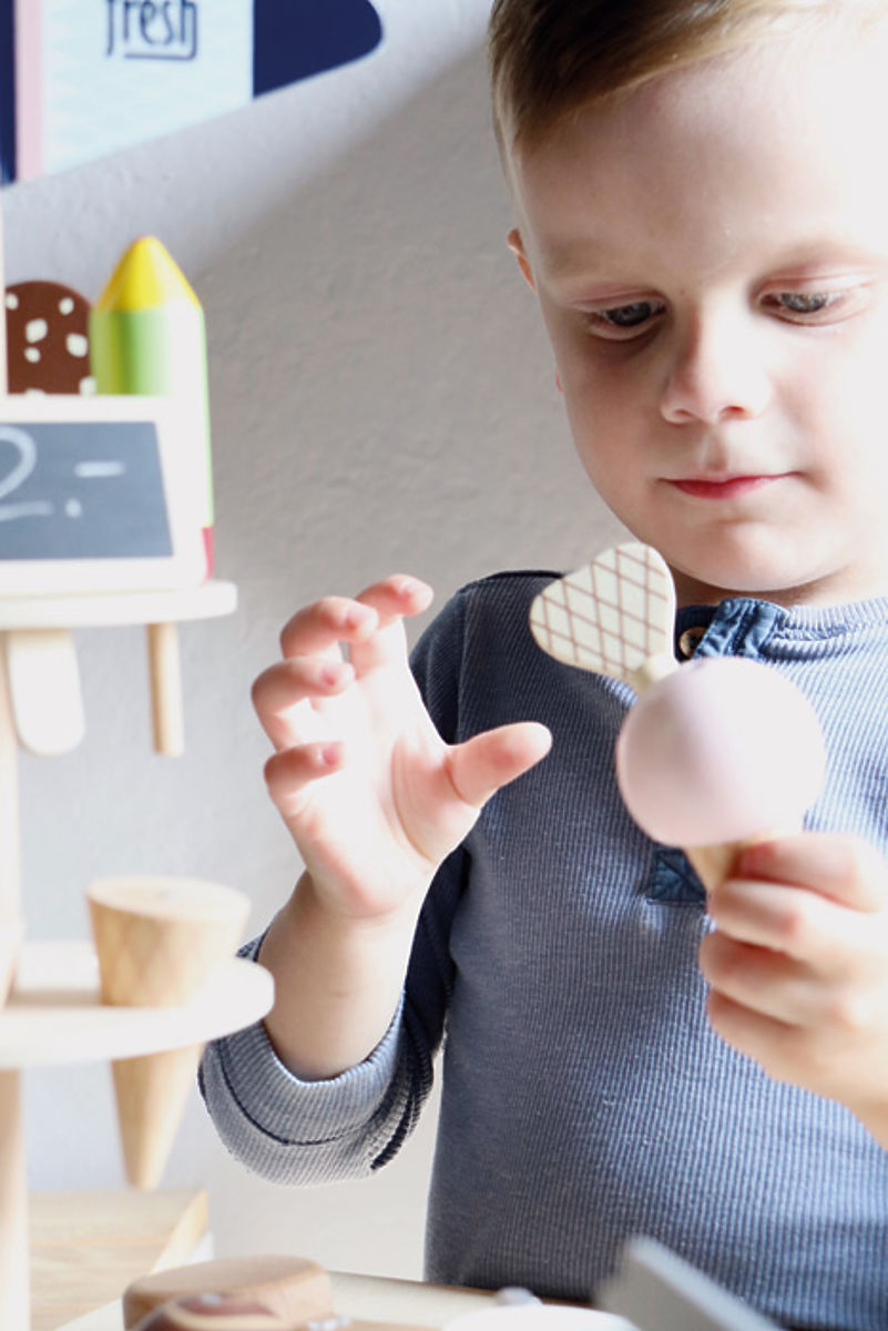 Eiskugelschaufel mit Magnetfunktion. 8 verschiedene Eissorten, von Eis am Stiel bis hin zu köstlichem Speiseeis. Die Eiskugeln sind stapelbar und mit Magneten ausgestattet. Waffelherzen und Portionen Schlagsahne zur Dekoration von Eiskreationen. Alle Teile des Eises passen in die farblich gekennzeichneten Plätze auf dem Ständer. Geschlechtsneutrales, unaufdringliches Farbschema mit viel sichtbarem Holzmaterial. Wird mit einer Kreidetafel zum Schreiben geliefert. Eine perfekte Ergänzung zum multifunktionalen Laden und anderen Spiellebensmitteln aus der Fresh-Produktlinie. Hauptmerkmale: Teile sind mit Magneten ausgestattet, alles hat seinen Platz auf dem Ständer, fördert die Kommunikations- und Sozialfähigkeiten des Kindes.