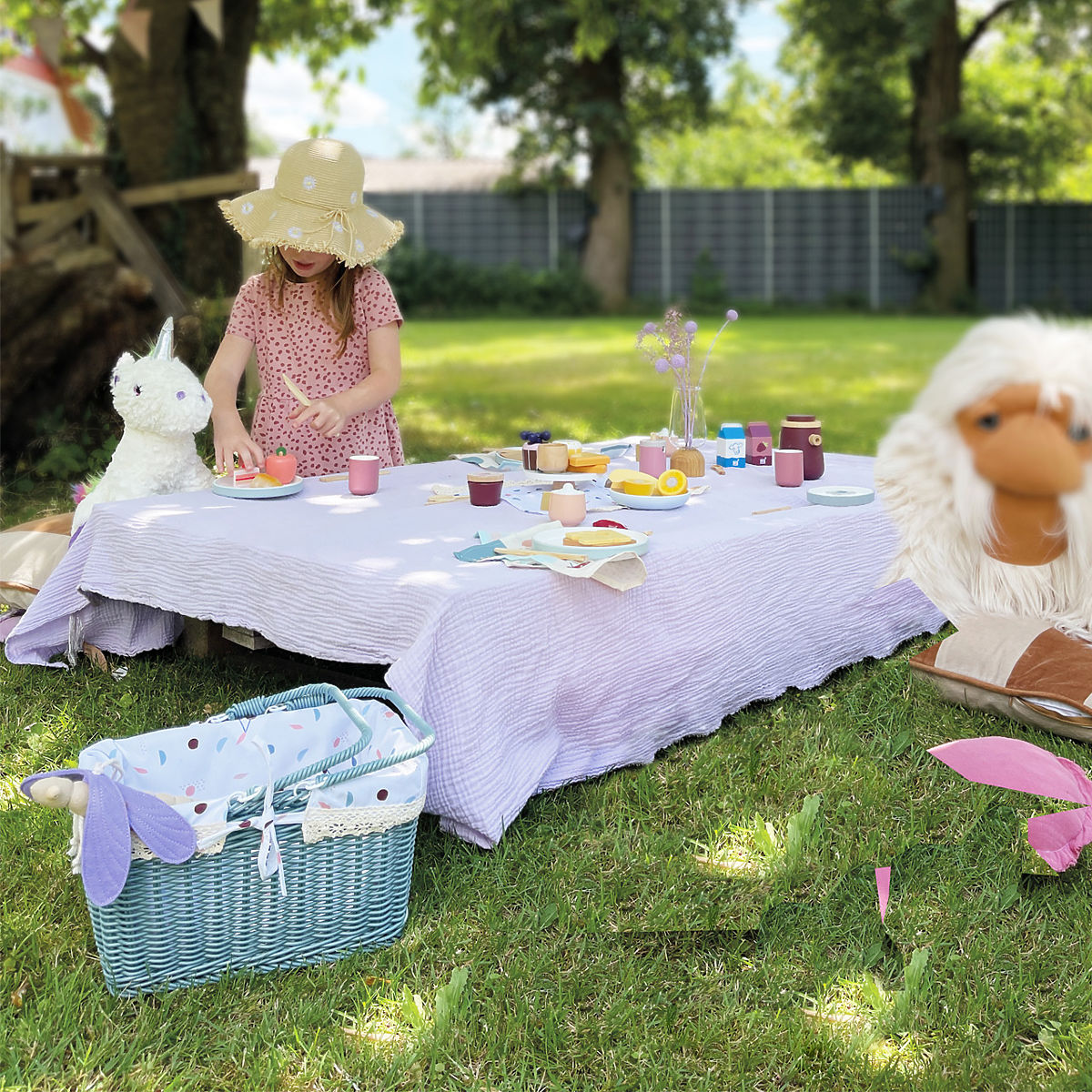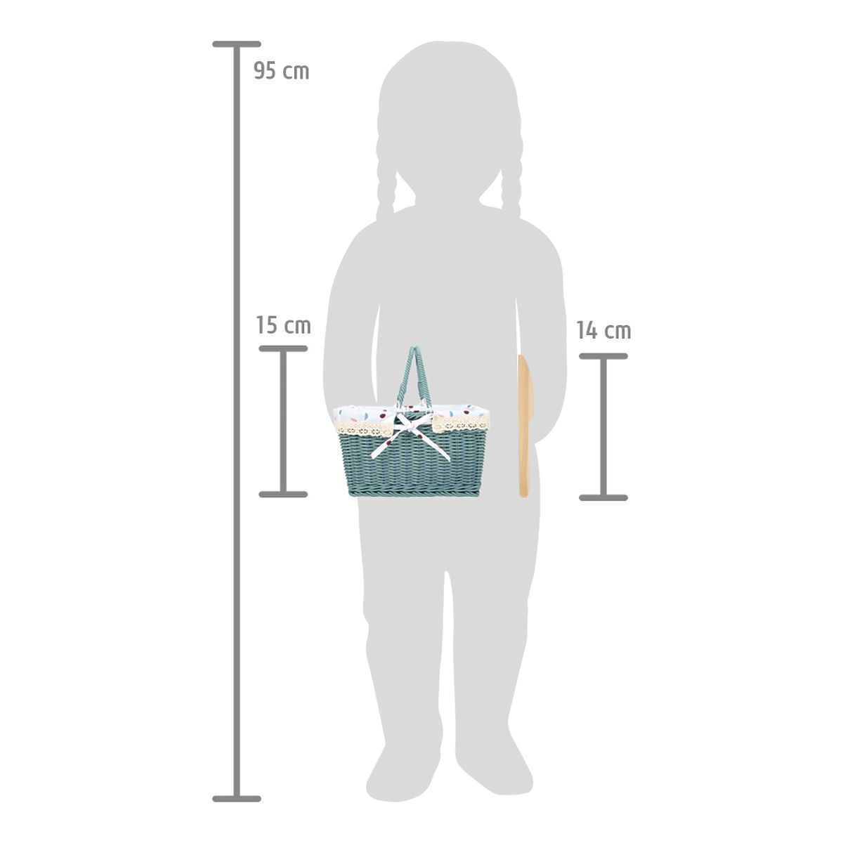 Sie können zum Picknick aufbrechen! Dieser hochwertige Picknickkorb mit klappbaren Griffen und Picknickdecke wird ein großartiges Accessoire für Ihre Ausflüge aufs Land oder in den Garten sein. Der Korb ist aus hochwertigem Weidengeflecht gefertigt und für 2 Personen ausgestattet. Das Geschirr und das Essen sind aus robustem Holz gefertigt. Orange und Croissant halten dank Klettverschluss zusammen. Die Innenverkleidung des Korbes kann herausgenommen und leicht gereinigt werden. Dieses Spielzeug hat die gleiche Farbgebung wie die Küche „Tasty“ und andere Produkte aus dieser Serie. Kinder werden mit ihr fantasievolles Spiel zu Hause und draußen genießen. Einige der Speisen können mit Hilfe eines Holzmessers „geschnitten“ werden. Hauptmerkmale: moderner und robuster Weiden-Picknickkorb„Essen“ für zwei PersonenGriffe können zusammengeklappt werdenDecke im gleichen Motiv im Lieferumfang enthaltenInnenverkleidung kann einfach herausgenommen werdenSpielzeug für Rollenspiele in Küchen oder beim Picknickunterstützt die Entwicklung der Feinmotorik, sozialen und alltäglichen Fähigkeitenmodernes Design in Kombination mit Weiß, Naturholz und trendigen Farbenkompatibel mit anderen Produkten der „Tasty“-Reihe