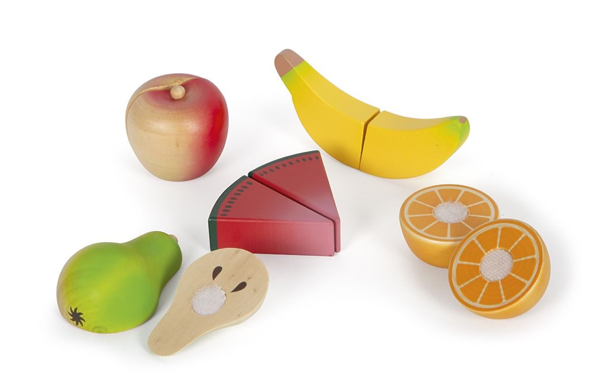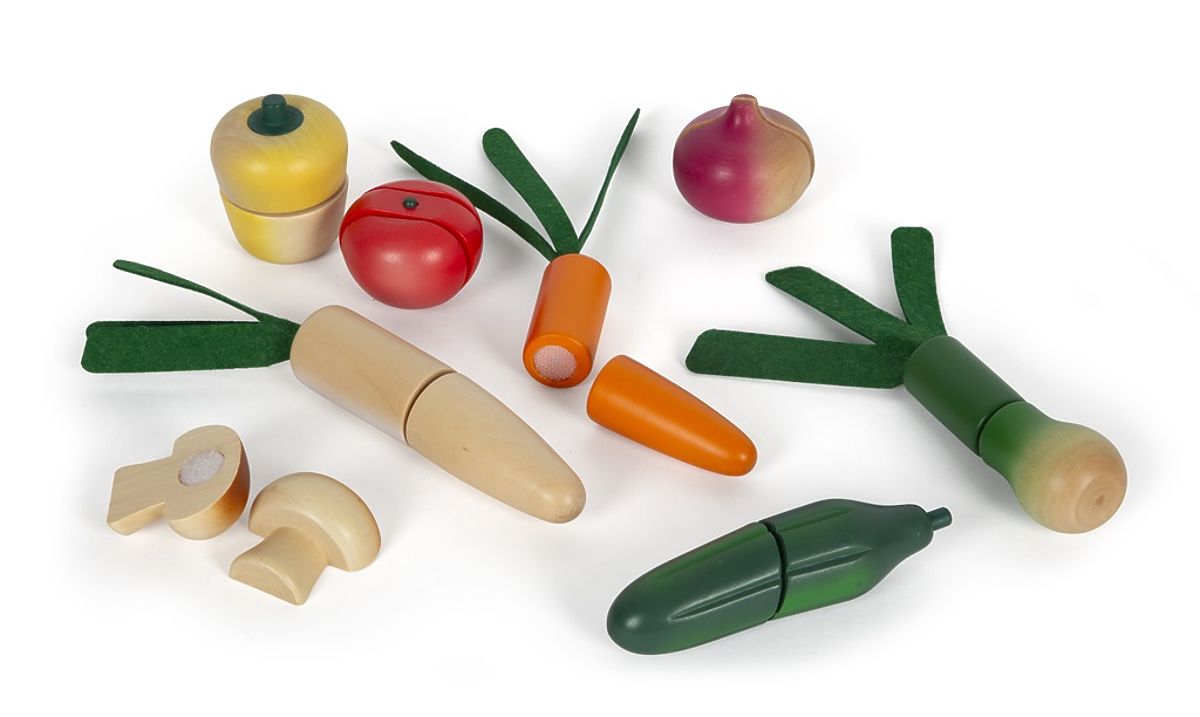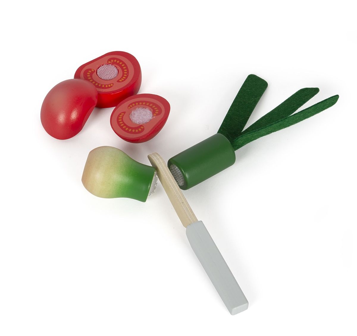 Dieses große Set von Lebensmitteln in einer praktischen Kiste ist nicht nur ein unverzichtbares Zubehör für jede Spielküche, sondern lehrt Kinder auch, die grundlegenden Arten von Obst, Gemüse und anderen Lebensmitteln zu erkennen. Für die Herstellung wurde robustes Holz verwendet und alles ist realistisch gestaltet. Die Lebensmittel sind mit Klettverschluss verbunden und Kinder können sie mit dem beiliegenden Messer leicht "schneiden". Das Set enthält ein Holzmesser, eine Tomate, eine Gurke, eine Karotte, einen Apfel, eine Banane, einen Pilz, eine Paprika, eine Zwiebel, einen Lauch, eine Orange, eine Melone, eine Birne und einen Rettich (Pastinake). Die wiederverwendbare Verpackung lehrt Kinder auf spielerische Weise Verantwortung für die Umwelt - Abfall und Verschwendung zu reduzieren, Dinge wiederzuverwenden und zu recyceln. Hauptmerkmale: geeignet für Kinderküchen, dank Klettverschlüssen können die Lebensmittel "geschnitten" werden, lehrt Kinder Verantwortung für die Umwelt, fördert kreatives und fantasievolles Spielen.