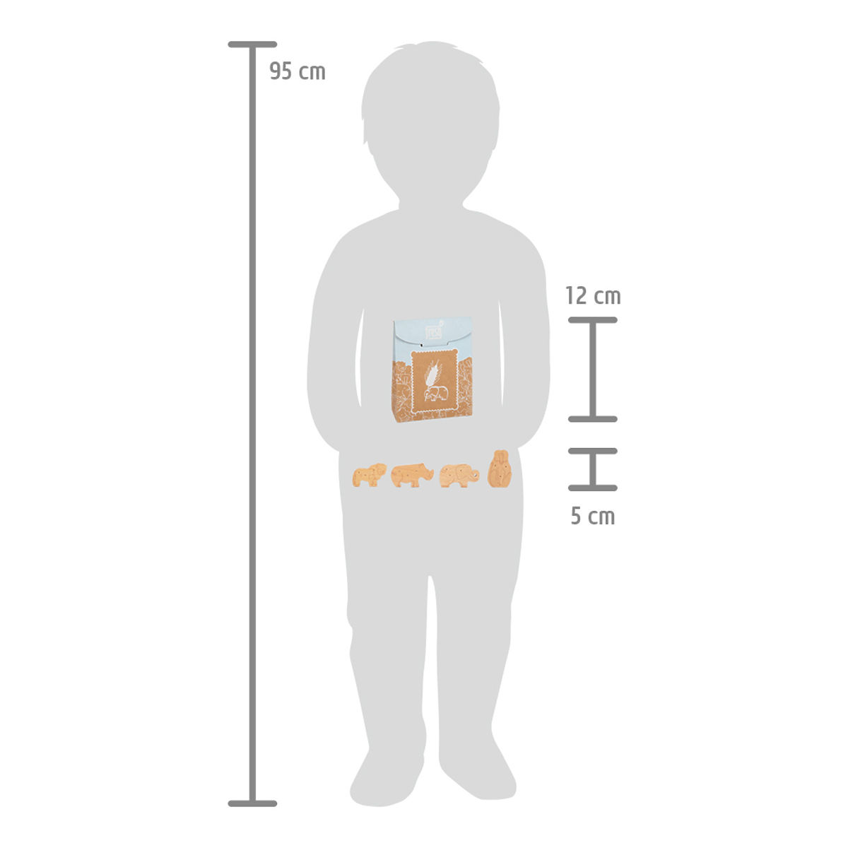 Tiere der Savanne als Kekse! Diese 8 robusten Tierkekse sind aus Holz gefertigt. Sie bereichern jeden Kinderverkaufsstand oder jede Spielküche. Sie sind in einer stabilen Verpackung aus Naturkarton verpackt. Der Inhalt der Verpackung ist auf der Rückseite abgebildet. Das natürliche und realistische Aussehen dieser Kekse macht sie zu Favoriten bei Kindern. Im Set enthalten sind 2 Löwen, 2 Affen, 2 Nashörner und 2 Elefanten. Das Spielzeug bietet Kindern langanhaltenden Spaß, besonders in Kombination mit anderen Produkten aus der „Fresh“-Reihe. Hauptmerkmale: acht robuste Kekseideale Ergänzung für Kinderverkaufsstände und Spielküchenrealistische Kekse in Tierformverpackt in unbehandeltem KartonDie Box lässt sich einfach öffnen und wieder verschließenkompatibel mit weiteren Produkten aus der „Fresh“-Reihe