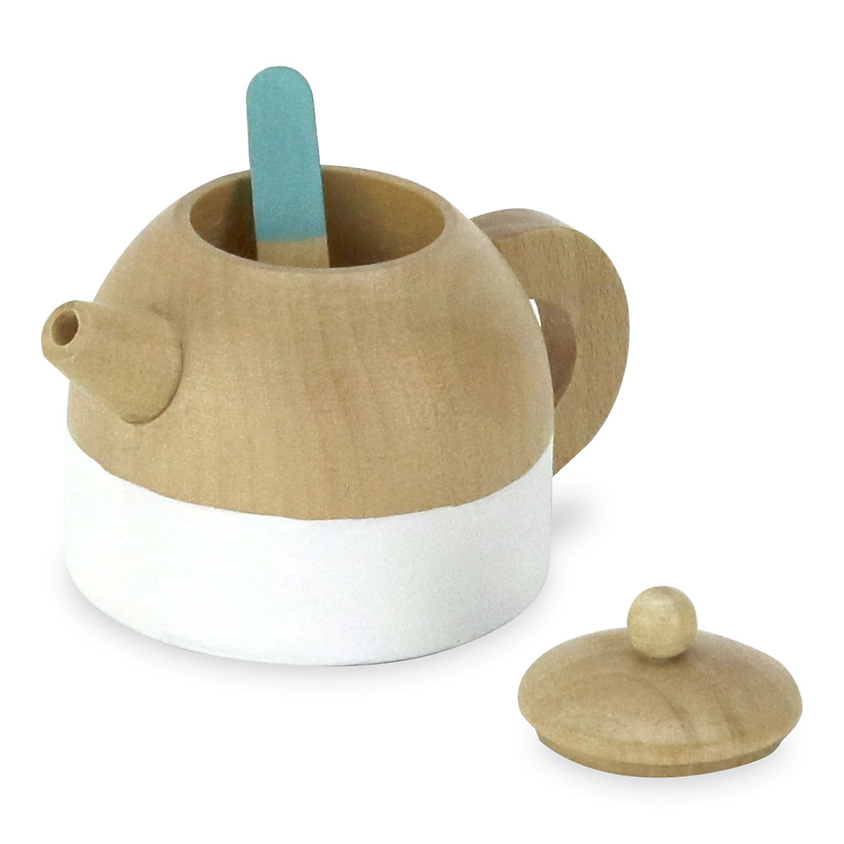 Teezeit! Kinder werden gerne ihre Kuscheltiere zum Spielen mit diesem hübschen Holz-Teeservice in sanften Farben einladen. Möchten Sie ein Erdbeertörtchen? Und .. mehr