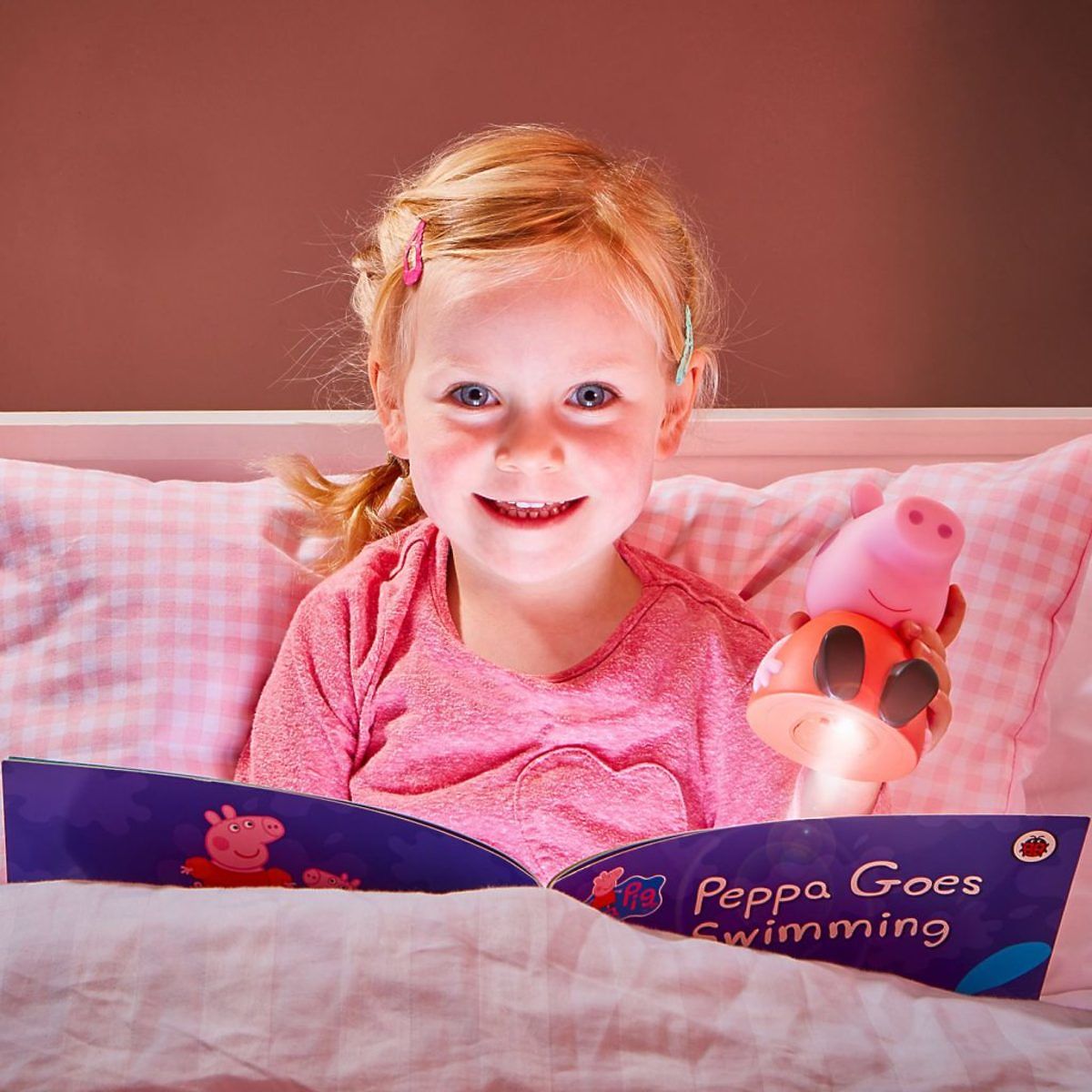 Du willst eine Lampe? Platzieren She einfach Peppas Sparschwein an seiner Stelle und beobachten She, wie das Licht emittiert. Weiches Licht beruhigt die Kinder und hilft ihnen, nach einem anstrengenden Tag voller Erfahrungen einzuschlafen.