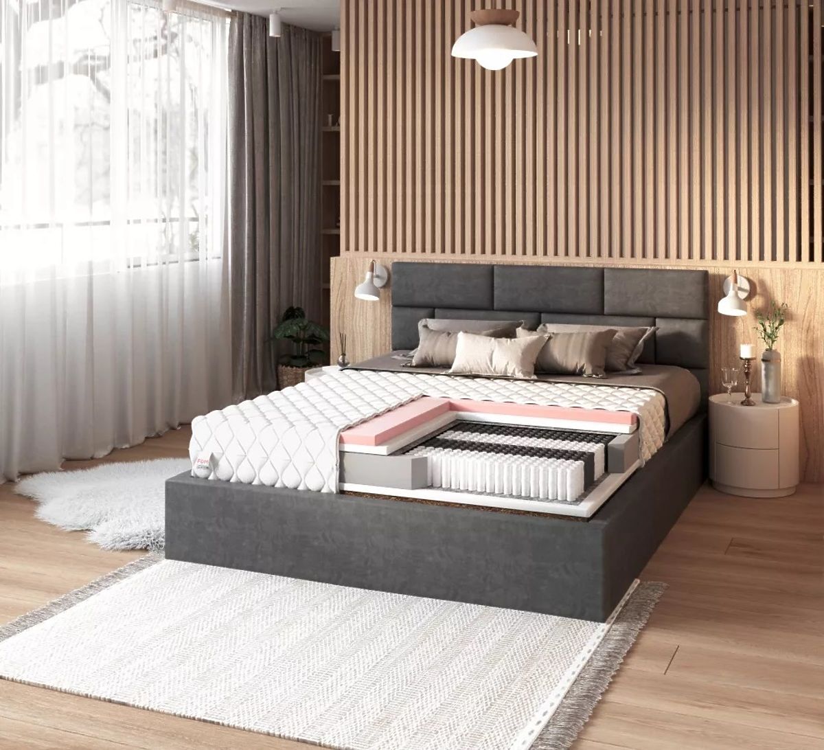 Die Ivrea- Taschenmatratze mit einer Höhe von 22 cm gehört zum goldenen Mittelweg zu einem ausgeglichenen und perfekten Schlaf. Es besteht aus mehreren unterschiedlichen Schichten, deren Basis Taschenfederkerne mit 7 Zonen zur Körperunterstützung sind. Dadurch ist jeder Teil Ihres Körpers während des Schlafs rundum wohl. Darüber hinaus reduziert es die Beschwerden, die durch die Bewegungen des Gegenübers entstehen, und sorgt so für einen ununterbrochenen Tiefschlaf.