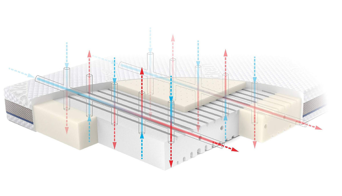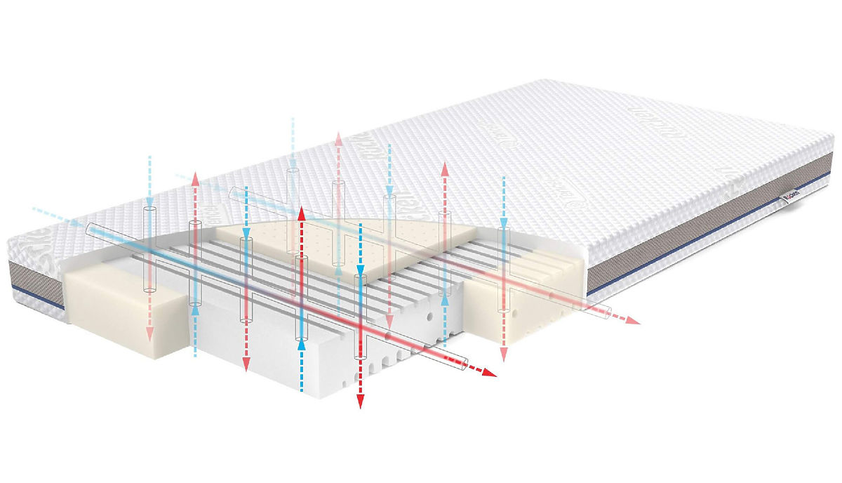 Der Bezug des Netzes und die vertikalen und horizontalen Kanäle sind vollständig integriert - dadurch entsteht ein entwickeltes Netz und die Matratze atmet.