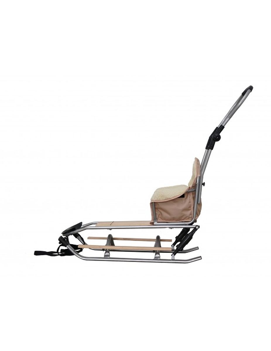 Der mit Wolle bezogene Sitz sorgt dafür, dass das Kind beim Rodeln Komfort und Wärmeisolierung hat. Die Rückenlehne bietet die notwendige Unterstützung für den Rücken des Kindes, was eine längere und bequemere Fahrt ermöglicht. Dank der Metallkonstruktion in Verbindung mit dem Schiebebügel ist der Schlitten stabil. Dies ist besonders wichtig auf verschneiten Hängen, wo feste Kontrolle erforderlich ist. Der Griff und die Rückenlehne sind abnehmbar, was es ermöglicht, den Schlitten an die Bedürfnisse des Kindes und der Eltern anzupassen.