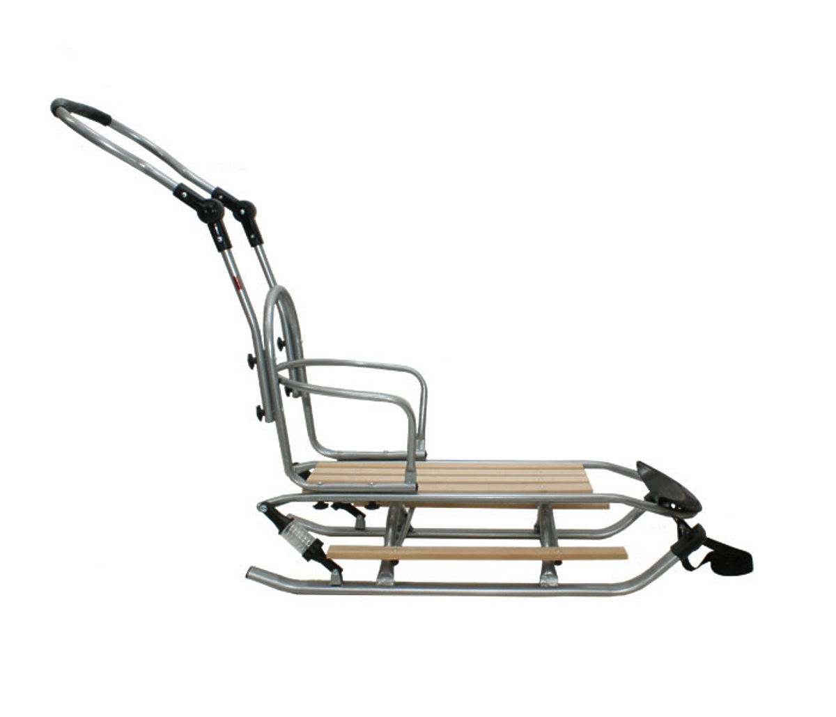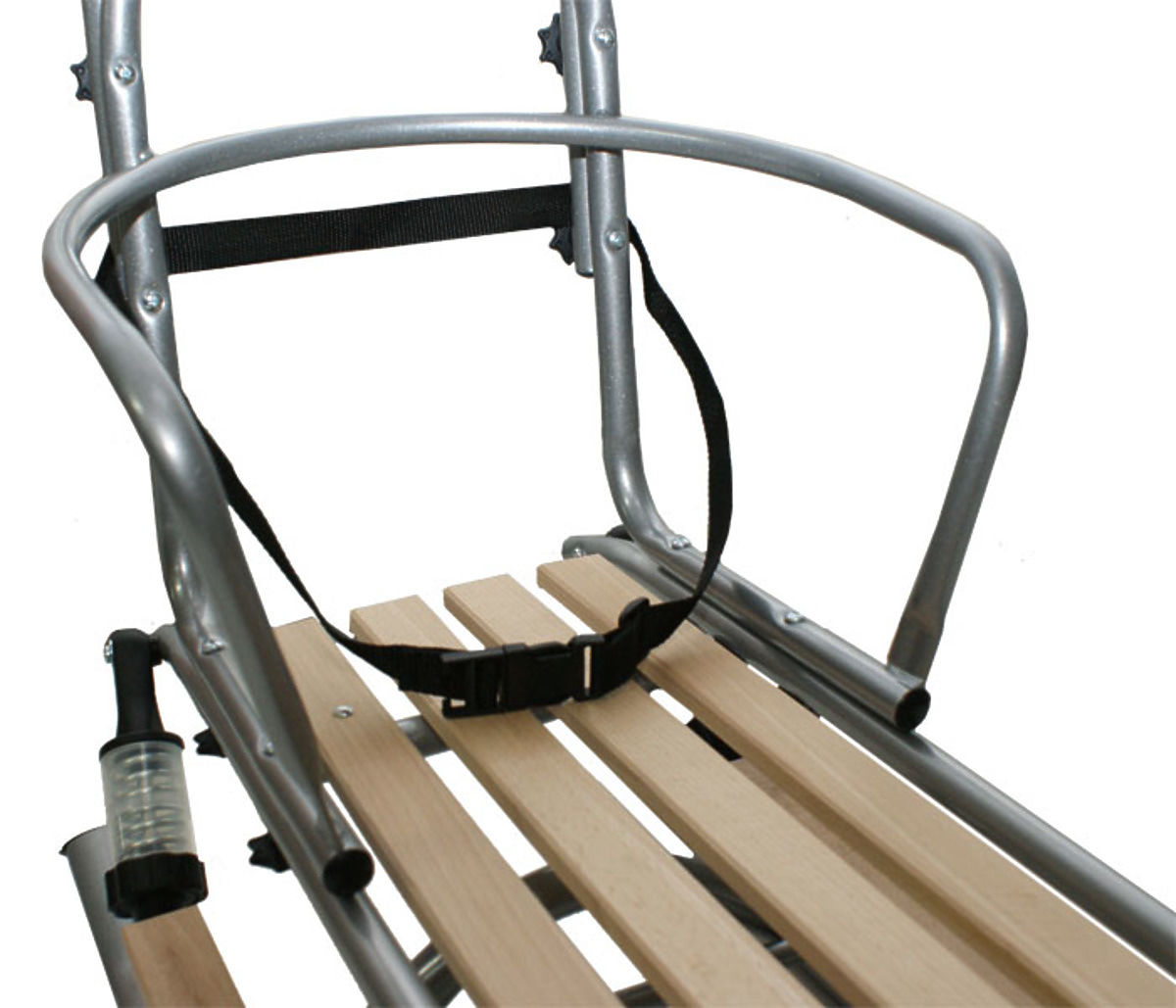 Der Sitz aus Buchenholzplatten ist mit Stoßdämpfern ausgestattet, sodass die Fahrt auf dem Schlitten glatt und komfortabel ist. Die Stoßdämpfer können von weich bis hart eingestellt werden. Die Führung hat eine einstellbare Höhe, sie kann demontiert und die Rückenlehne abgeschraubt werden, sodass Sie den Schlitten nach Ihren Vorlieben anpassen können.
