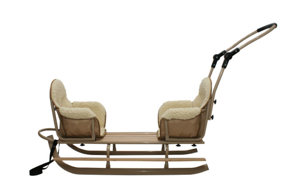 Die universelle beige Konstruktion der Schlitten passt sowohl für Mädchen als auch für Jungen hervorragend.