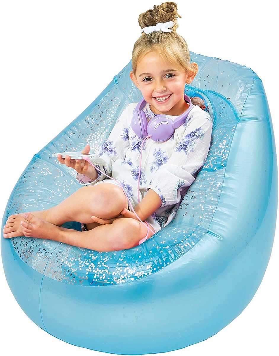 Das lustige, aufblasbare Sofa mit Glitzer und mit dem beliebten Frozen-Motiv ist ein Hingucker in jedem Kinderzimmer. Das Sofa bietet eine bequeme Lösung zum Entspannen, Märchen gucken oder Bücher lesen.