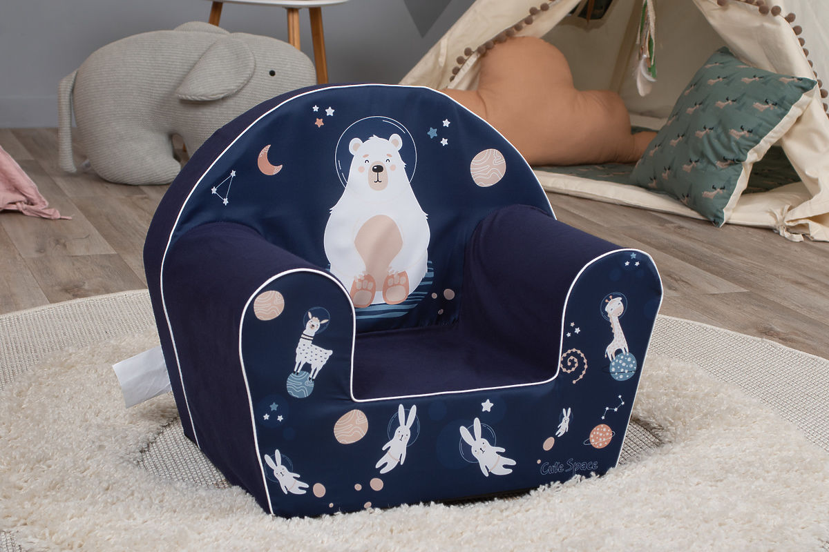 Das schöne dunkelblaue Kinder Sofa mit Eisbär-Motiv passt perfekt in jedes Kinderzimmer! Das Kindersofa ist aus einem weichen und leichten Schaumstoff hergestellt und auch für die kleinsten Kinder perfekt geeignet.