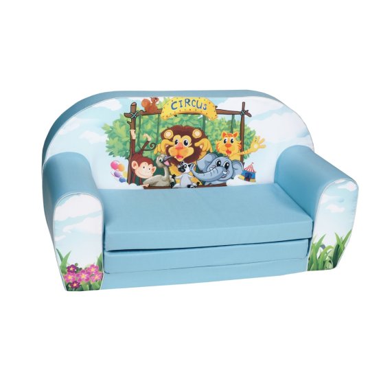 Schönes Sofa mit fröhlichen Tieren aus dem Zirkus ist leicht, so dass auch ein Kind es leicht bewegen, entfalten und falten kann.