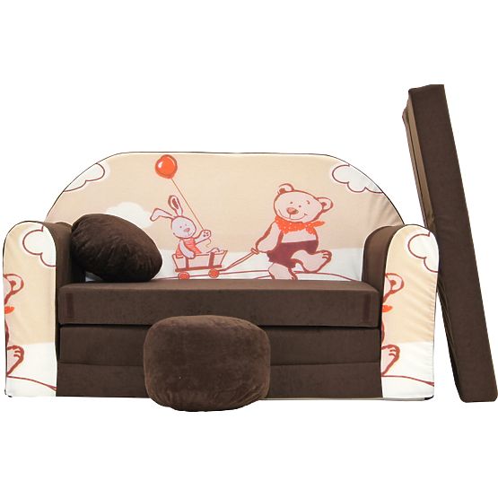 Dieses Sofa können Kinder zudem spielend leicht selbst auseinander- und wieder zusammenbauen. Der Bezug ist weich, aus Baumwolle, mit einem Zusatz von Velours. Die robuste Rückenlehne ermöglicht eine bequeme Stütze ohne das Gefühl von Druckstellen am Rücken.